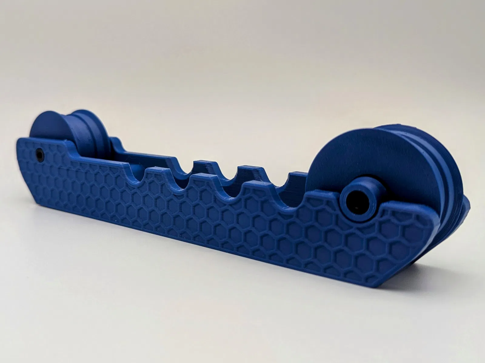 Sau khi kiếm hoài mà không thấy spool roller nào ổn, chịu được nhiều kích cỡ spool khác nhau, mình quyết định tự thiết kế luôn. Qua vài ý tưởng và vài lần chỉnh sửa (iterations), cuối cùng mình ra được mẫu này!