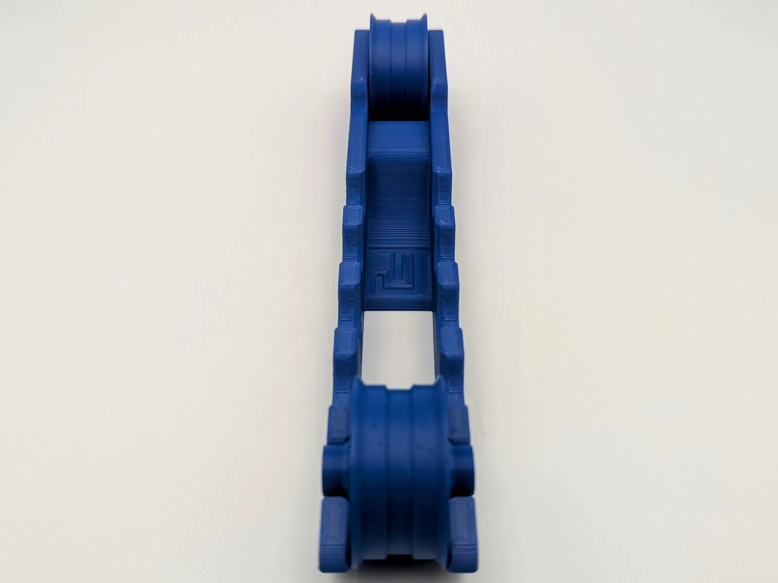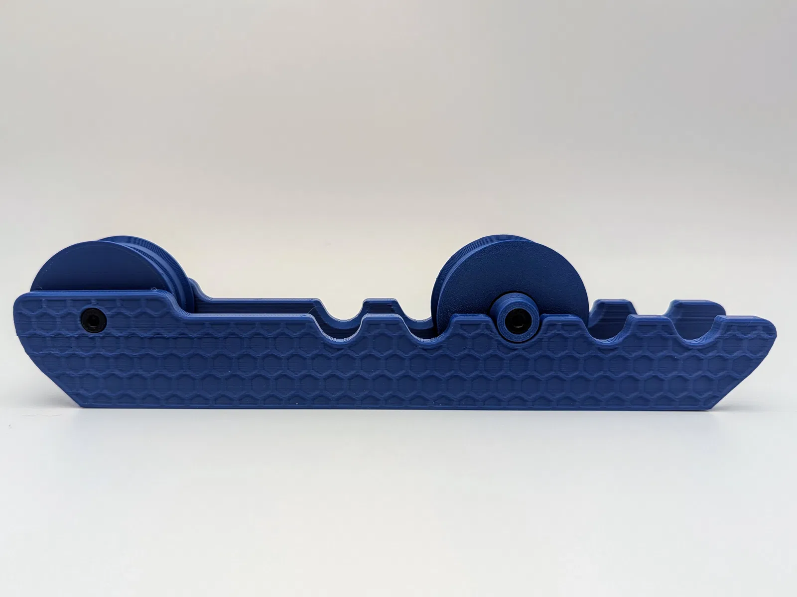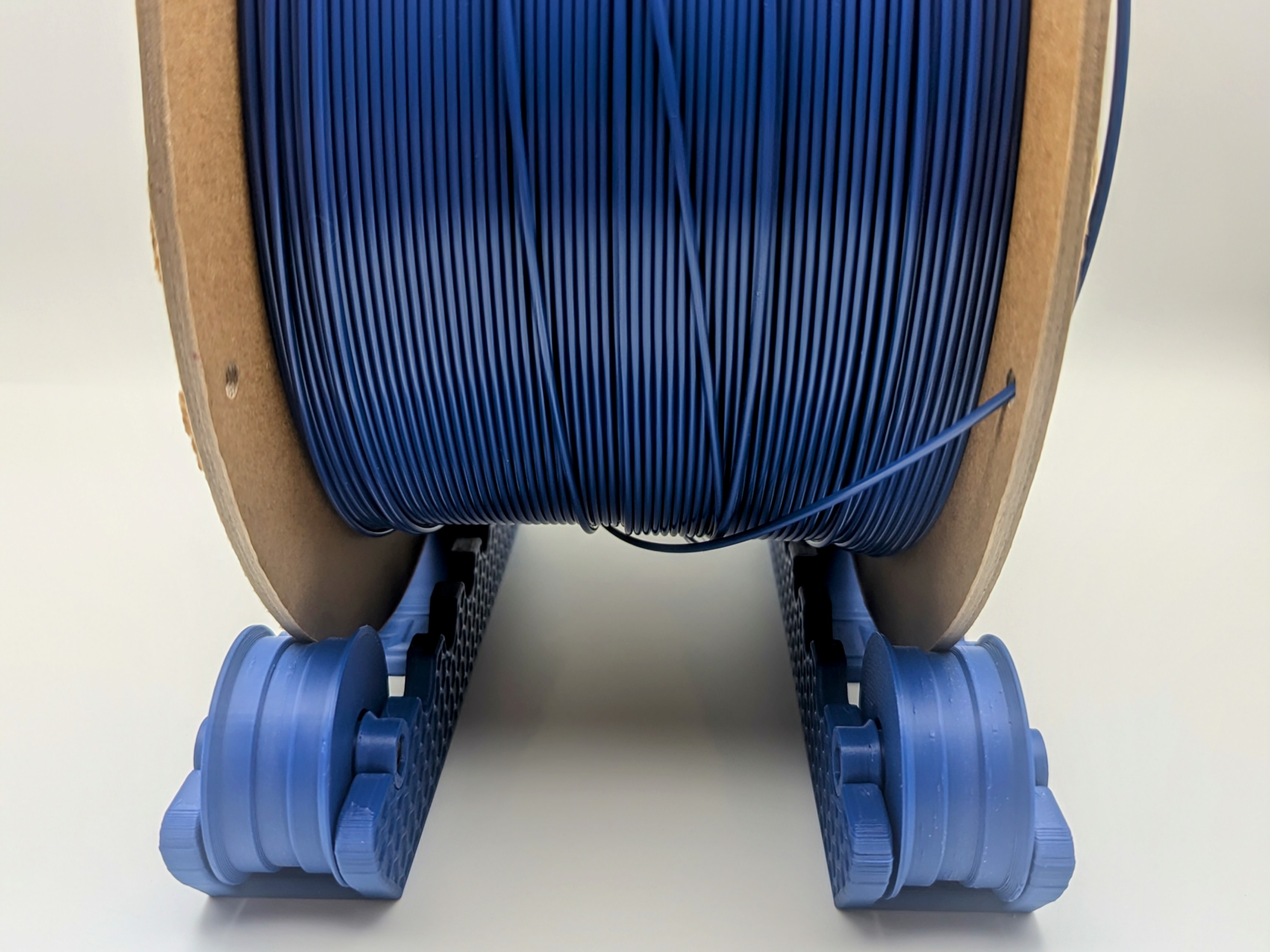 Nó dùng được với spool đường kính từ 100mm đến 300mm (spool 1kg thường khoảng 200mm). Mẫu này đã được test với spool PolyMaker 1kg, 3kg và 5kg, đồng thời đảm bảo cuộn luôn nằm ở góc tiếp tuyến (tangent angle) tốt với bánh xe, giúp spool không bị kéo tuột ra khỏi roller. In 2 roller riêng lẻ sẽ phù hợp nhiều bề ngang spool khác nhau, mà khi không dùng vẫn gọn, không chiếm chỗ.