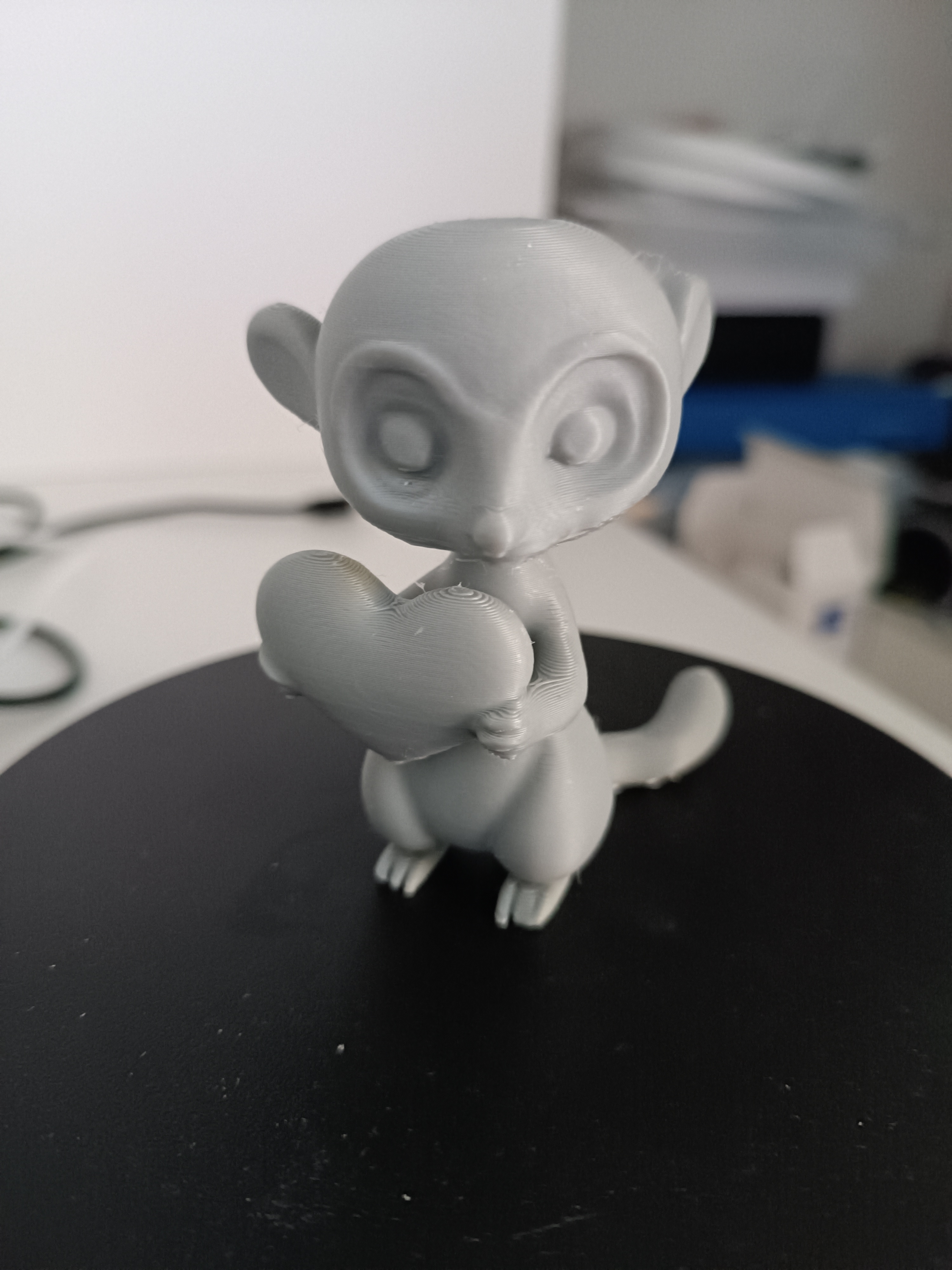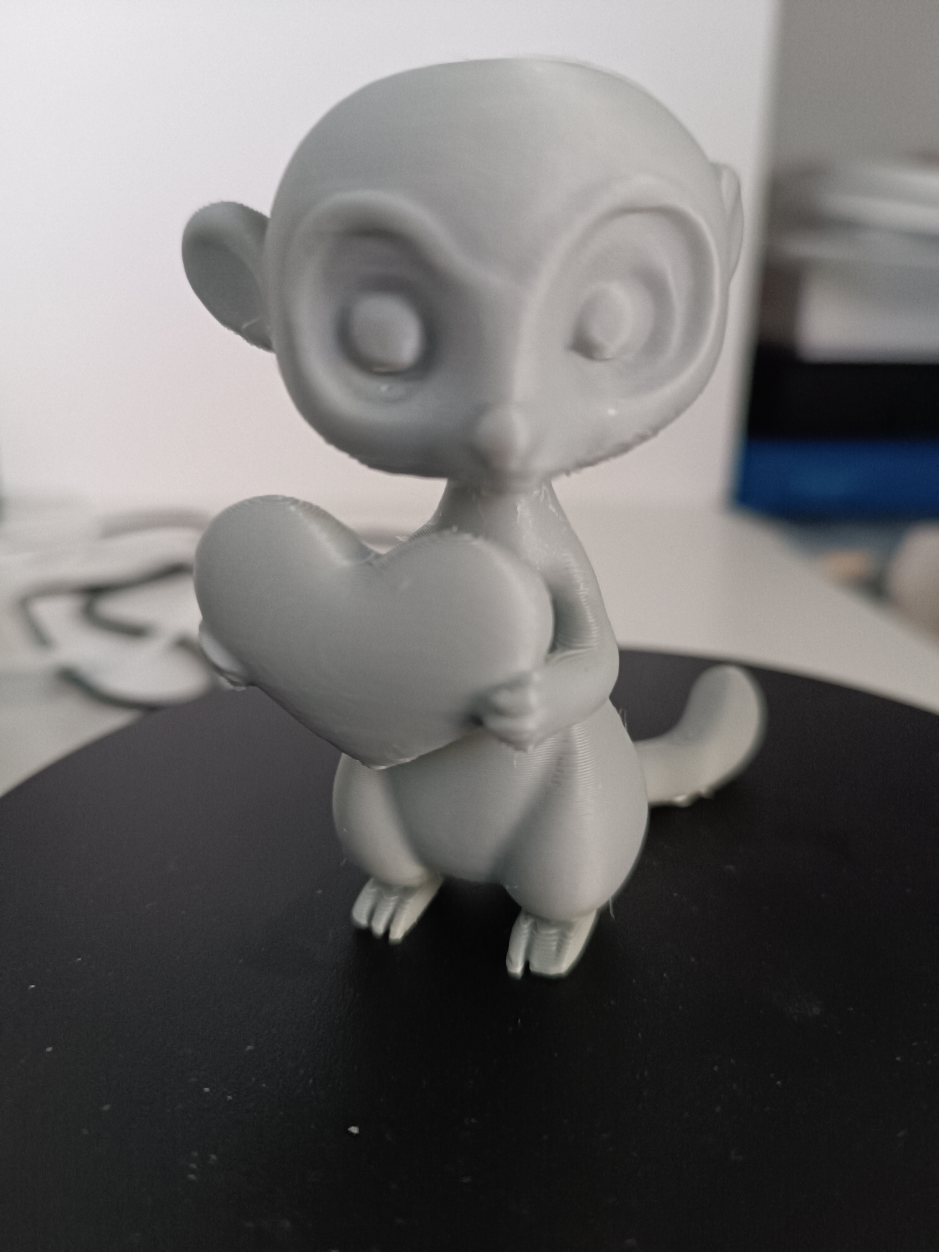 Mẫu Erdmännchen (meerkat) được AI tạo, ôm một trái tim bự trong tay—ý tưởng quà tặng Valentine dễ thương. File in 3D có thể scale, khuyến nghị Support dạng cây và Infill 10–15%.