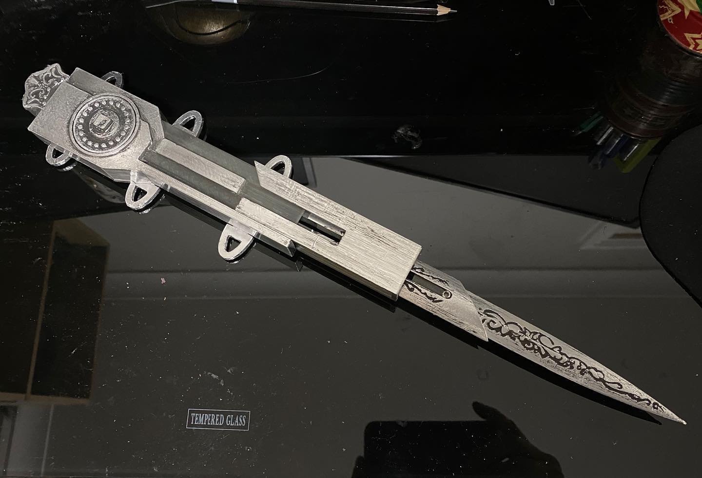 Mẫu hidden blade của Ezio Auditore (WIP) theo phiên bản tự thiết kế. Khi in/ráp, có vài chi tiết cần copy và mirror lại, đặc biệt là phần lưỡi dao.