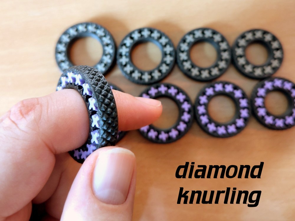 Đây là một biến thể của món fidget toy “đỉnh” nhất của mình, thêm diamond knurling cho ai thích bề mặt nhám/gai góc hơn một chút. Xem thêm các mẫu fidget ring khác của mình (có cả vòng tay).