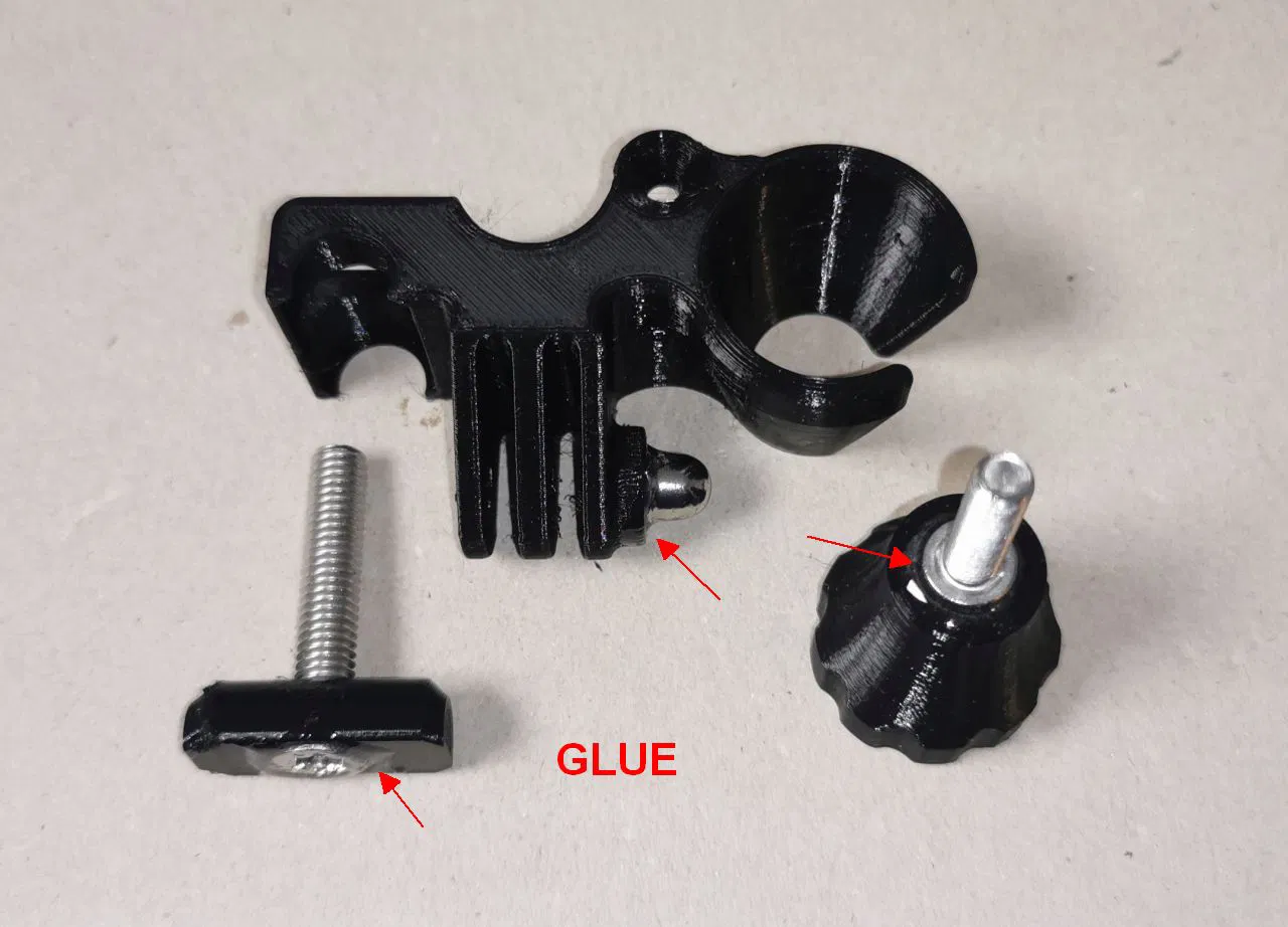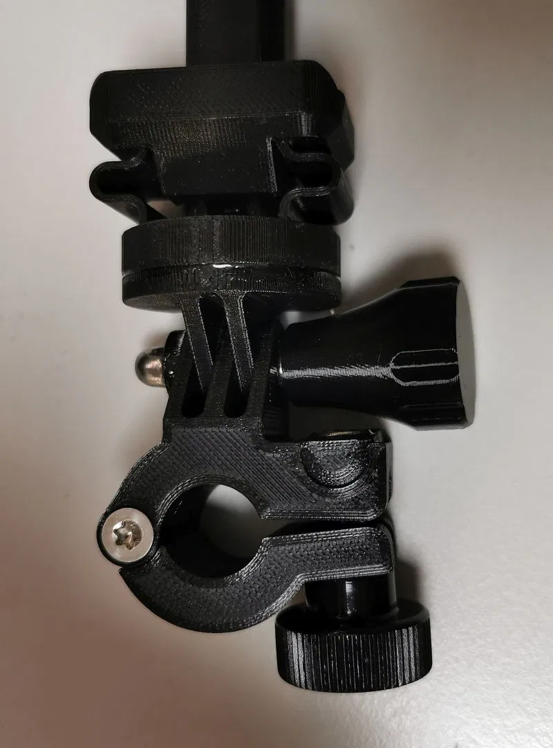 Adapter kẹp ống 15mm để gắn phone holder in 3D lên chân microphone, dùng được cho smartphone và iPad (cần mount dài). Hỗ trợ ngàm GoPro Mount, có danh sách ốc/tán cần thiết và link file CAD để chỉnh đường kính.