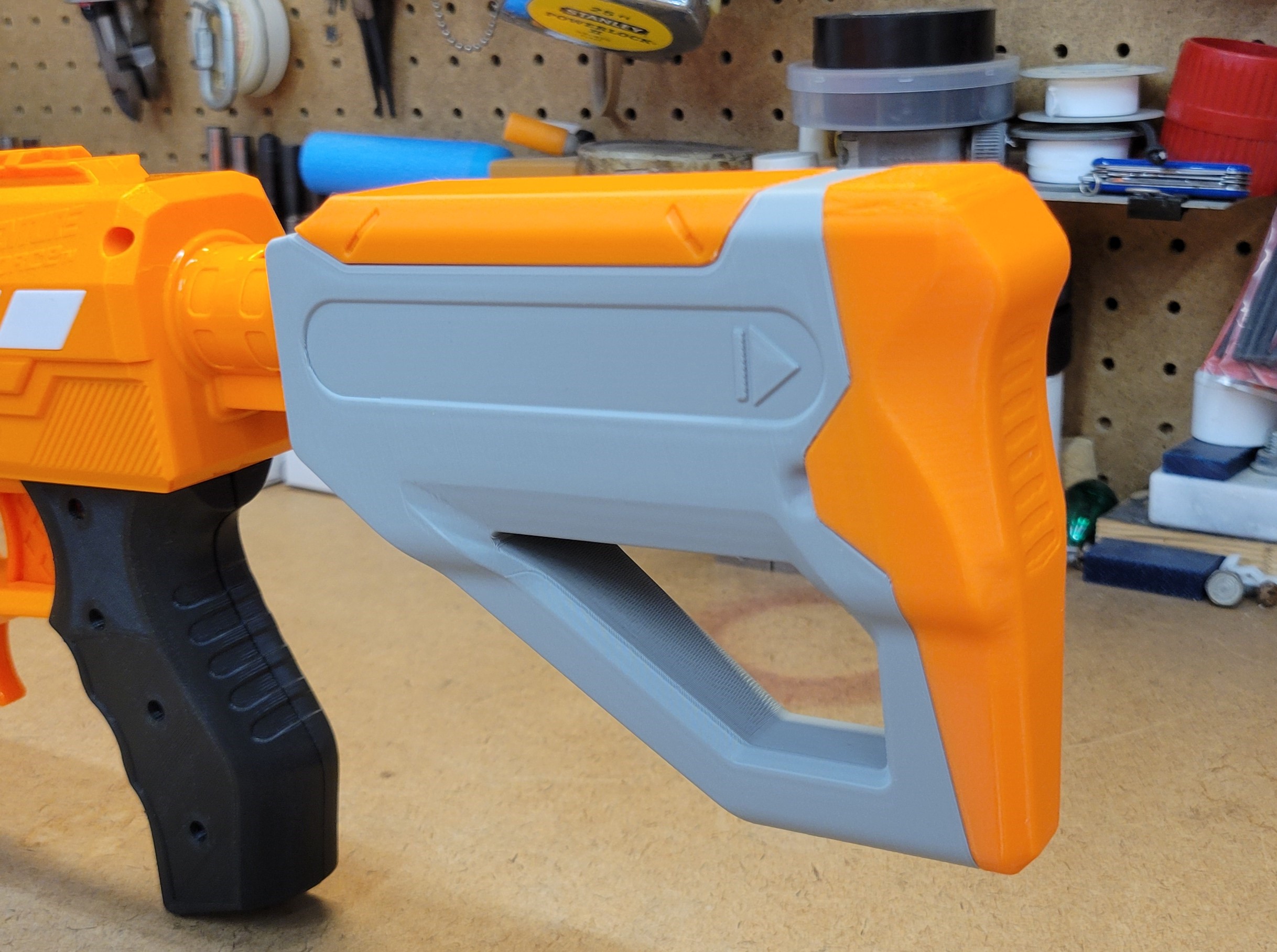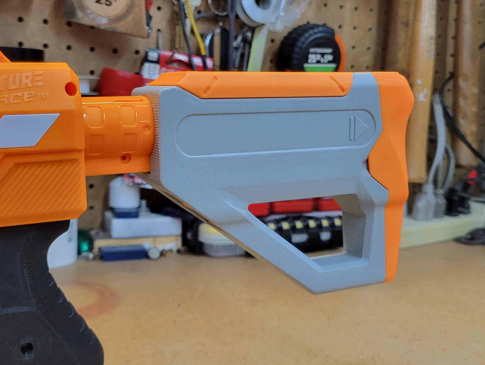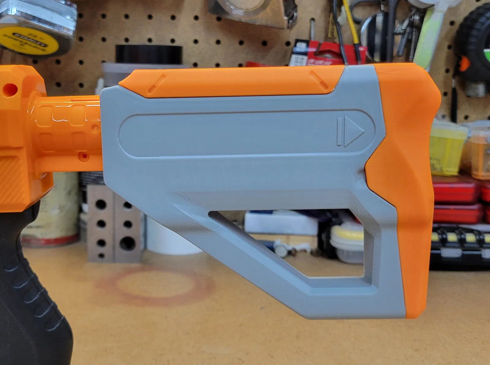 Chào mọi người! Đây là một phiên bản của báng Medium Length Nerf Torrent của mình, được làm để tương thích với buffer tube. Beneto có liên hệ và hỏi mình liệu có phiên bản nào của các báng Torrent tương thích buffer tube không, và lúc đó thì chưa có. Nhưng mình thấy đây là thứ khá dễ làm vì mình đã có sẵn tool trong CAD từ các dự án trước. Vậy nên, đây là kết quả của ý tưởng đó!