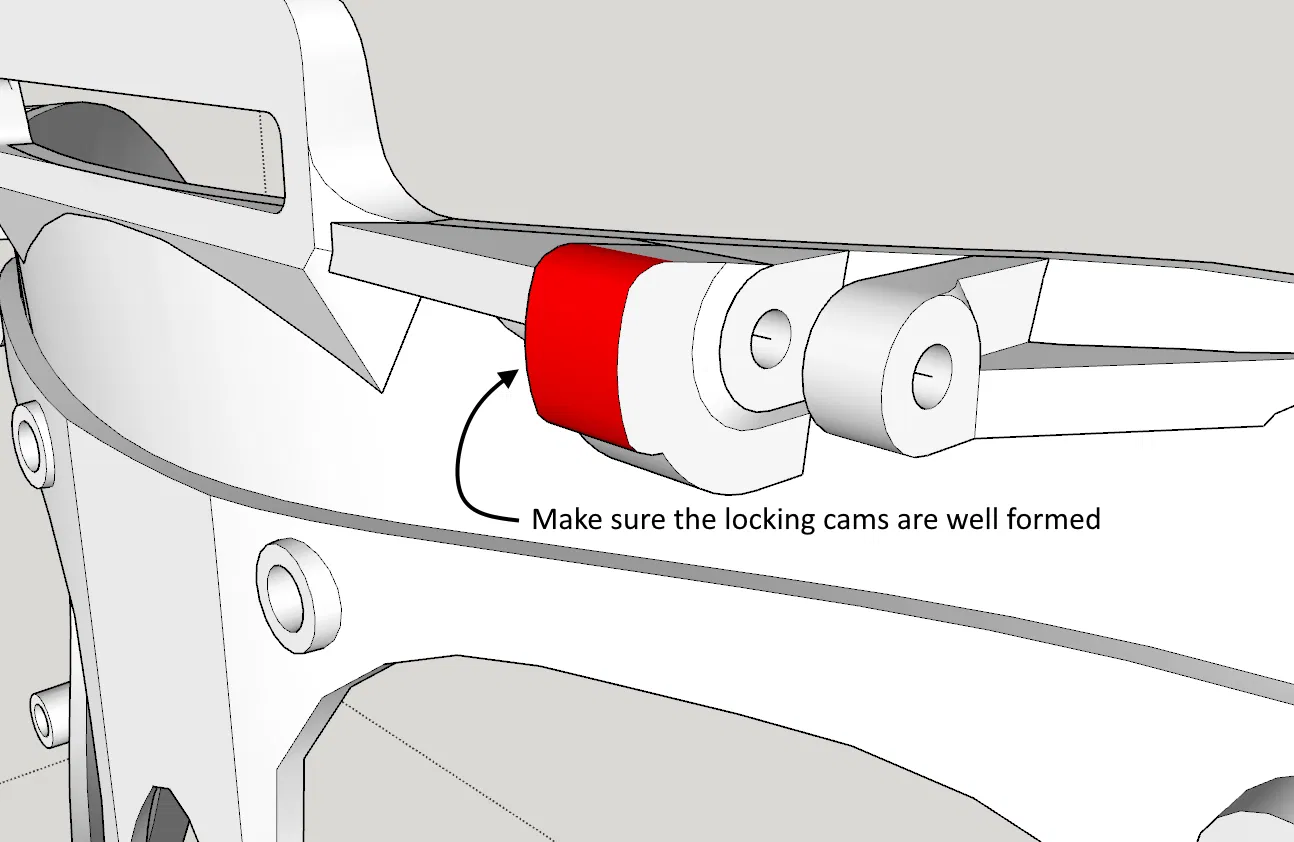 - Đảm bảo các locking cams được in rõ trên Flipterface vì nó ảnh hưởng lực cần để flip up