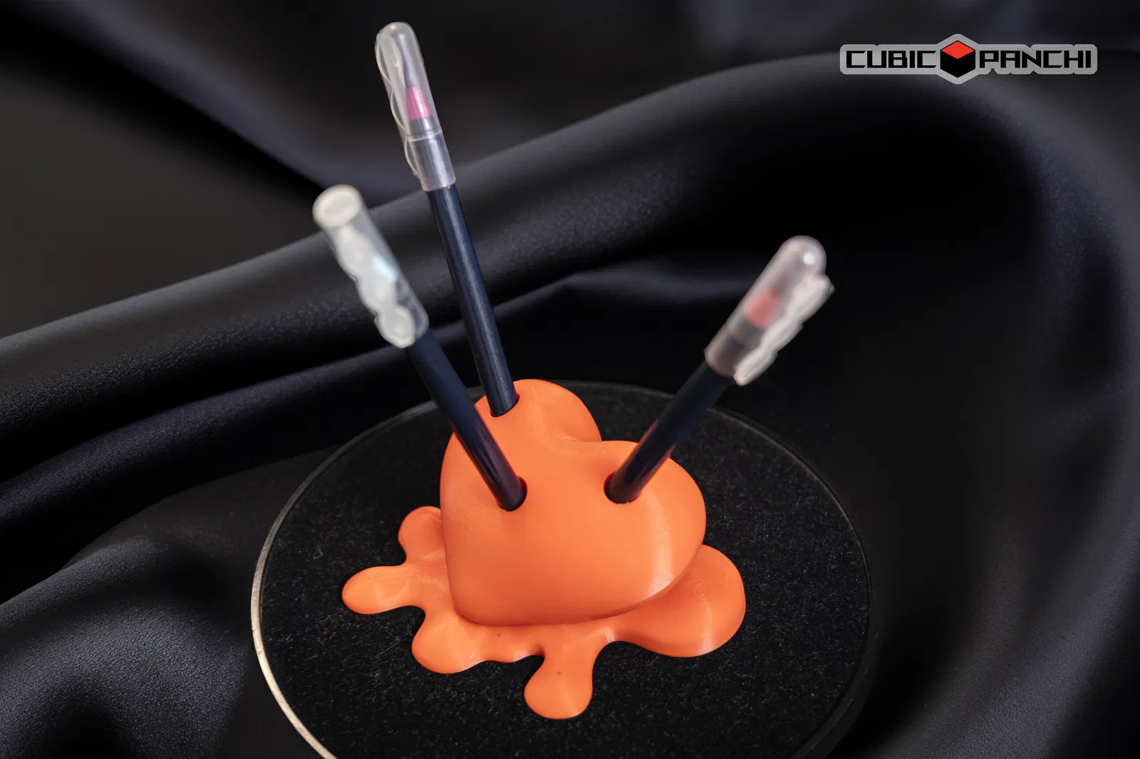 Mẫu pen stand hình trái tim in 3D này được thiết kế như một trái tim bị mũi tên đâm xuyên, nhìn vừa nghệ thuật vừa “chất”. Chi tiết được làm kỹ, bề mặt mịn, giúp bàn làm việc nổi bật hơn, đồng thời vẫn tiện dụng để cắm bút.