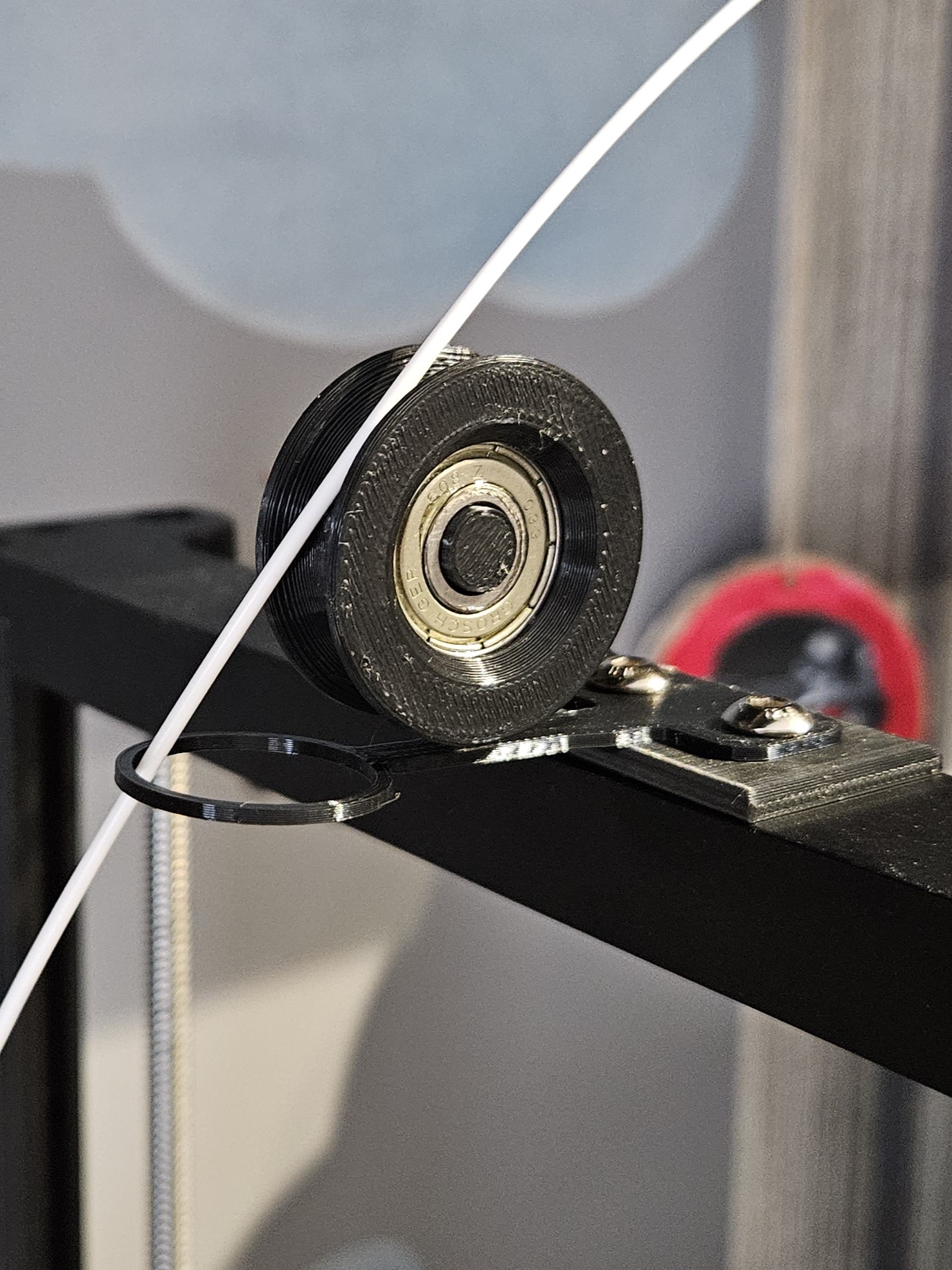Pulley dẫn filament đơn giản cho khung Creality Ender 3 V3 SE/KE, cũng có thể dùng cho mục đích khác. Lắp không cần phụ kiện thêm, chỉ cần filament và 1 vòng bi; có khung dẫn hướng rời để tùy chỉnh.