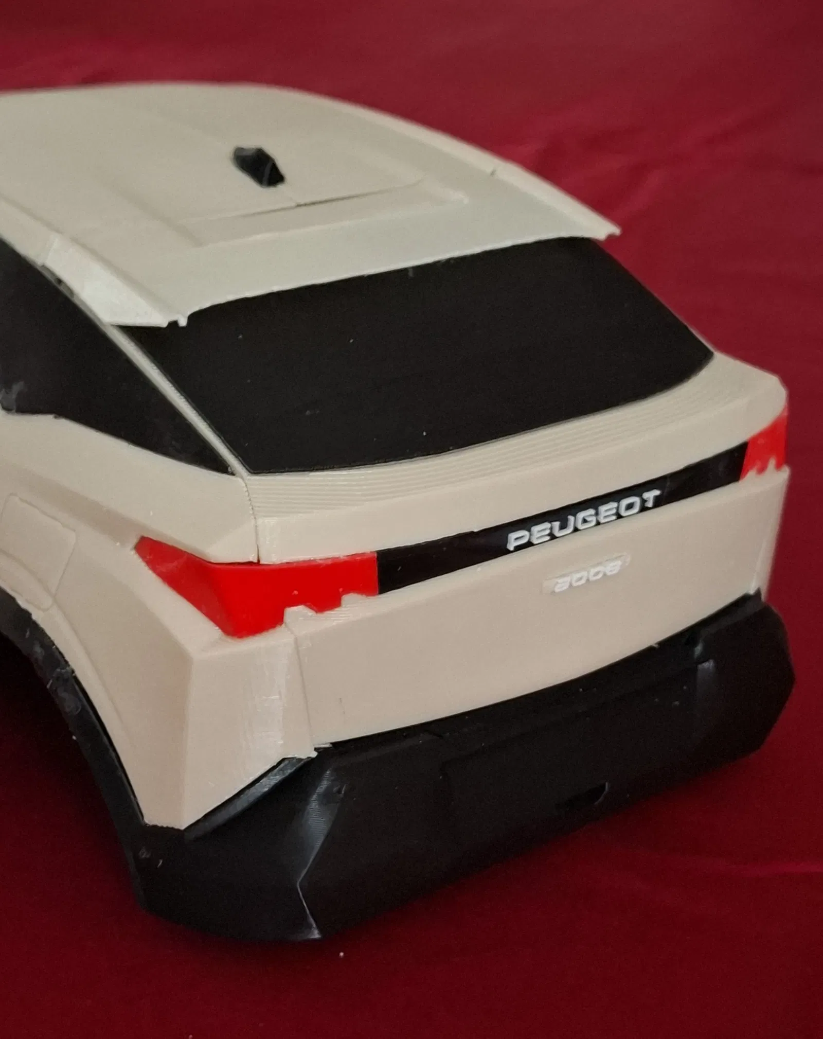 Phiên bản thân xe RC Peugeot 3008 (2024) tỉ lệ 1:12, kích thước lớn hơn. Cửa cốp mở được để dễ thao tác pin, wheelbase 228mm. File chia theo màu để in ra nhìn đẹp ngay, nhiều chi tiết lắp bằng ốc M3.