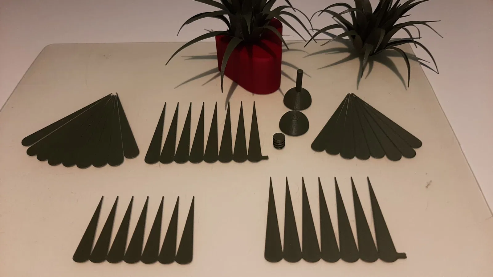 Tiếp theo, dán lần lượt các lá cỡ M, L và XL, mỗi lá hơi lệch về phía cuống.