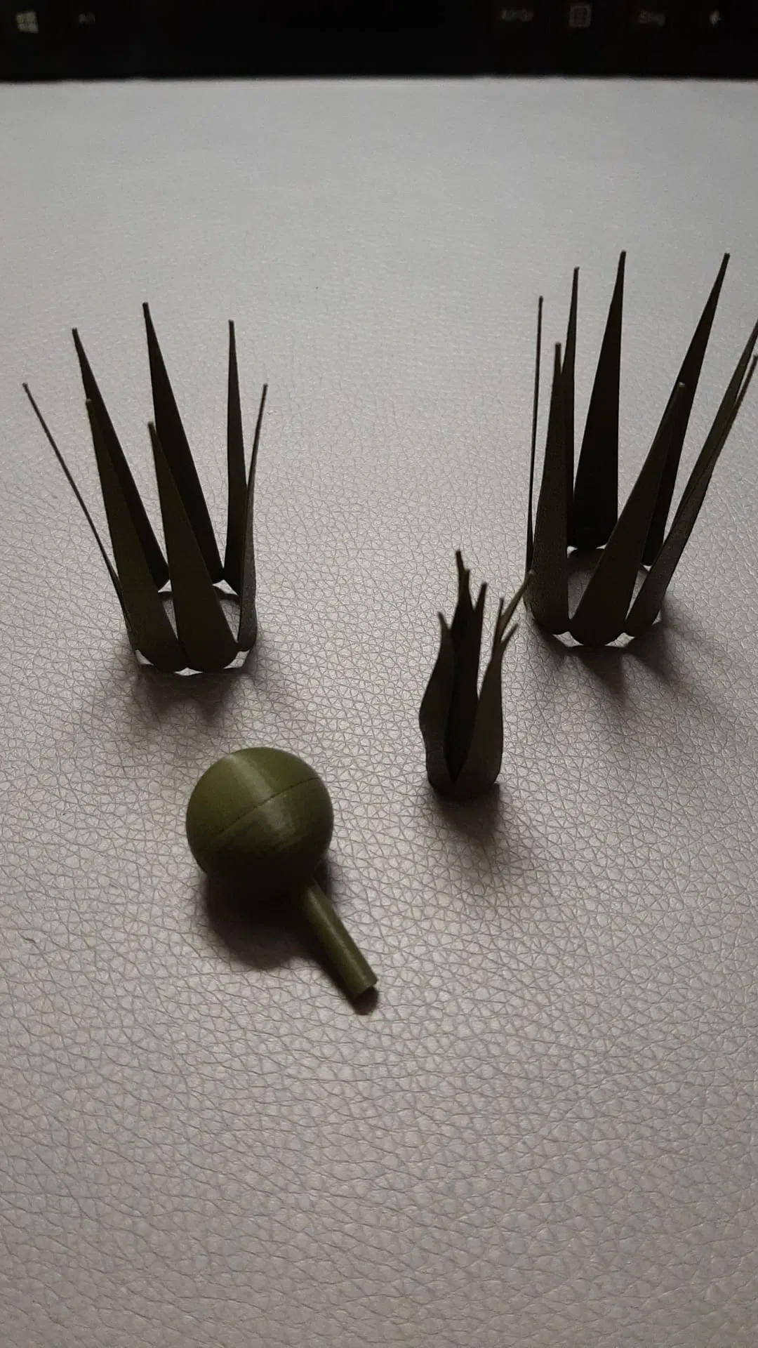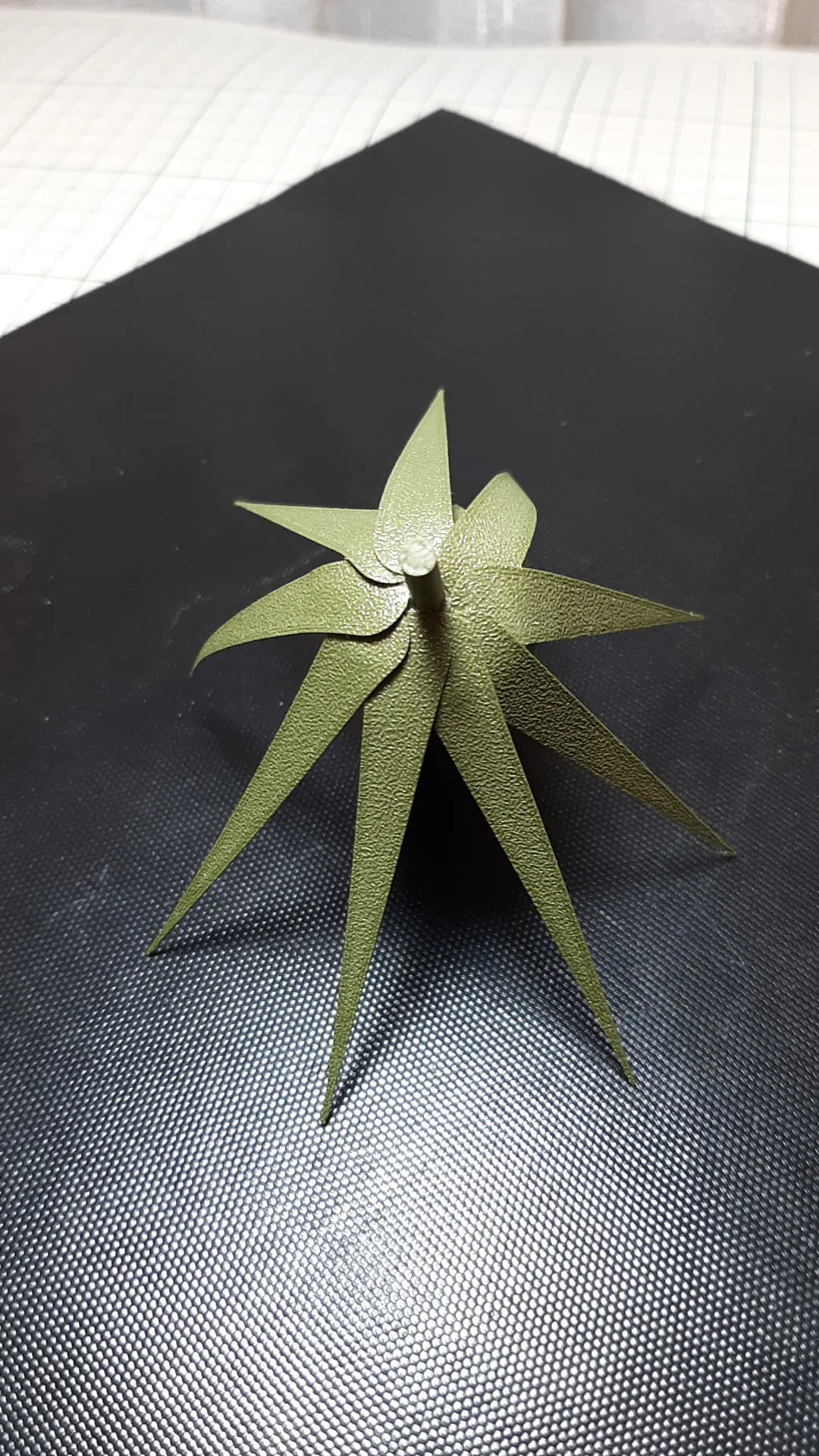 Lá cỡ XS thì vặn xoắn lại rồi dán cố định, sau đó dán vào chính giữa phần quả cầu.