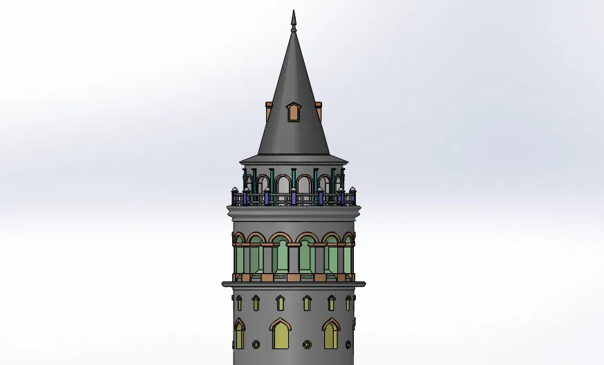 Mẫu Tháp Galata ở Istanbul được thiết kế chi tiết và thân thiện khi in bằng SolidWorks. Có bản single part và bản sectional 5 phần ghép bằng pin, khuyến nghị in scale lớn hơn, tối ưu cho PLA+.