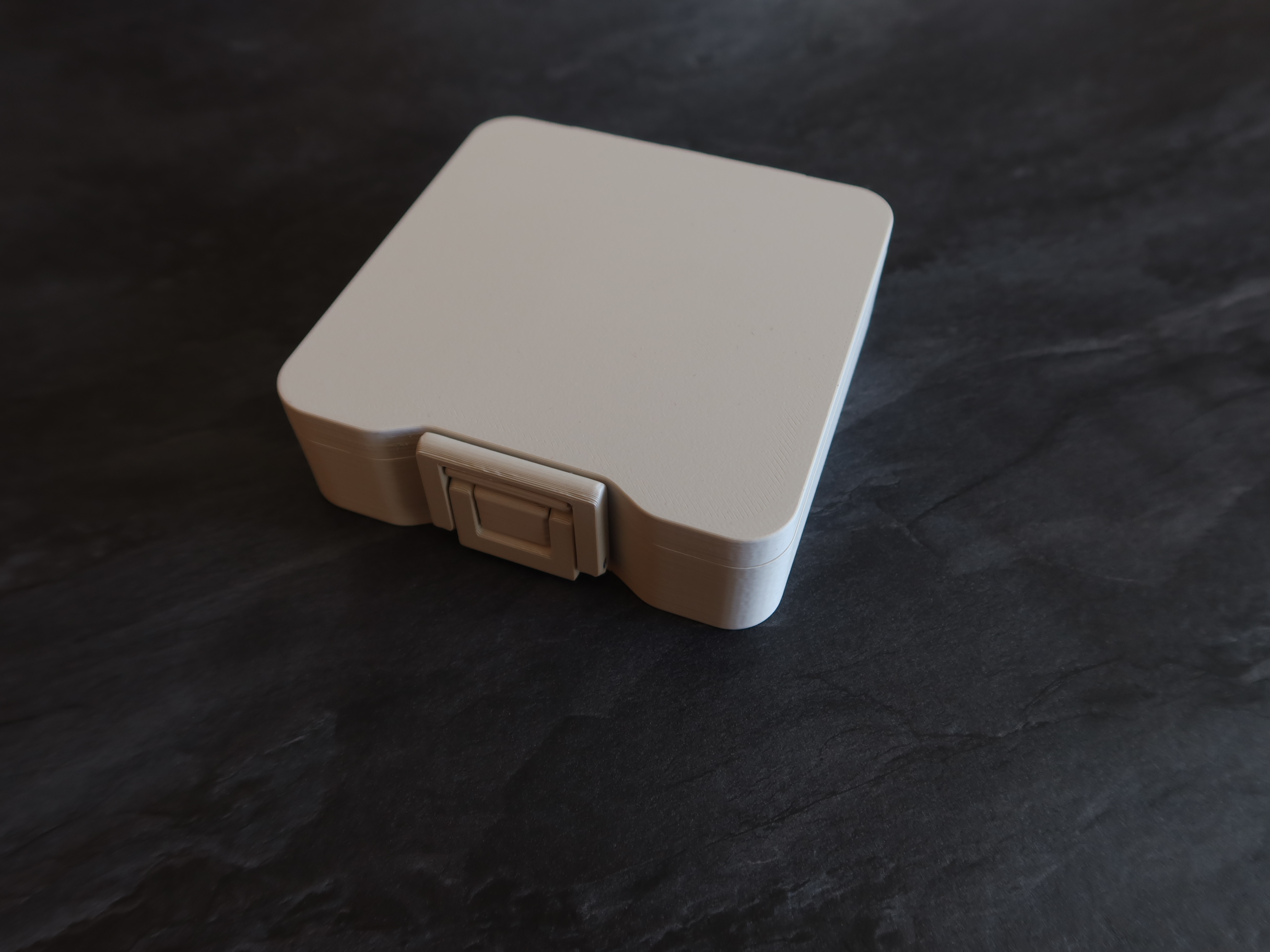 Hộp nhỏ có nắp bản lề và kẹp khóa, phù hợp kích thước trung bình. Dùng một đoạn filament làm trục khi lắp. Có kèm file thiết kế Fusion 360 để tự tuỳ biến, thêm nhiều 3mf theo các tổ hợp kích thước.