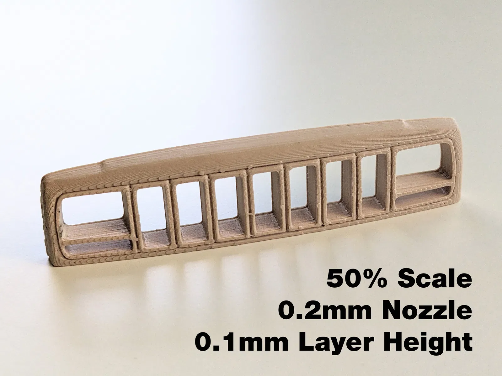 Mẫu 144mm được làm theo tỉ lệ 1/10 so với kích thước thật. Mình in bản 72mm với nozzle 0.2mm để treo lên keyring không bị quá to. Nếu bạn in bằng nozzle tiêu chuẩn 0.4mm thì nên thử chỉnh scale để lên được chi tiết các đường panel lines.