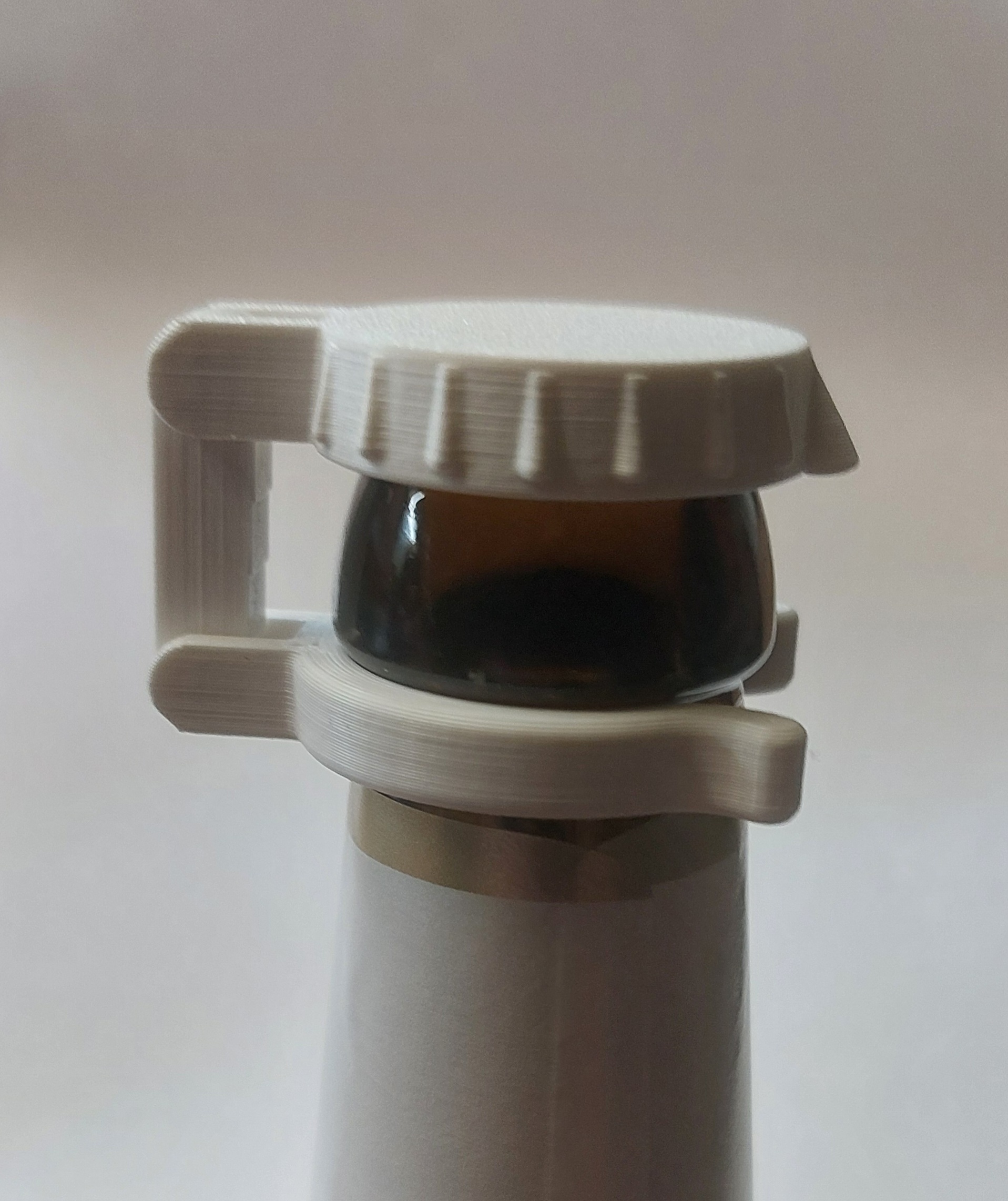 Nắp đậy chai bia dùng ngoài trời để bảo vệ khỏi côn trùng. Nắp này không nhằm mục đích bịt kín hoàn toàn, dạng Print in Place.
