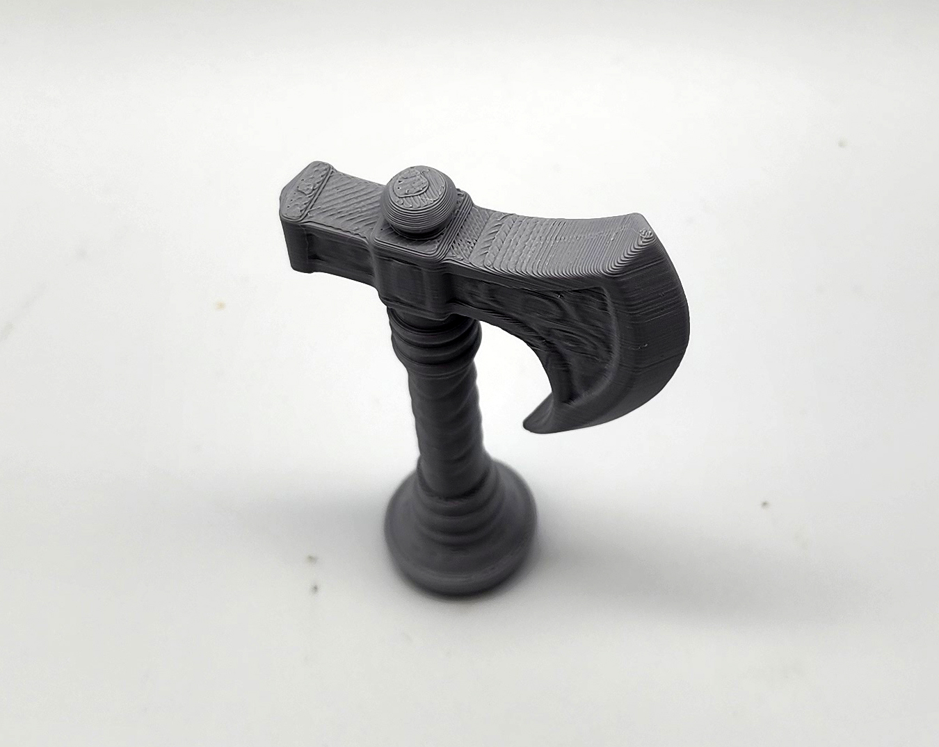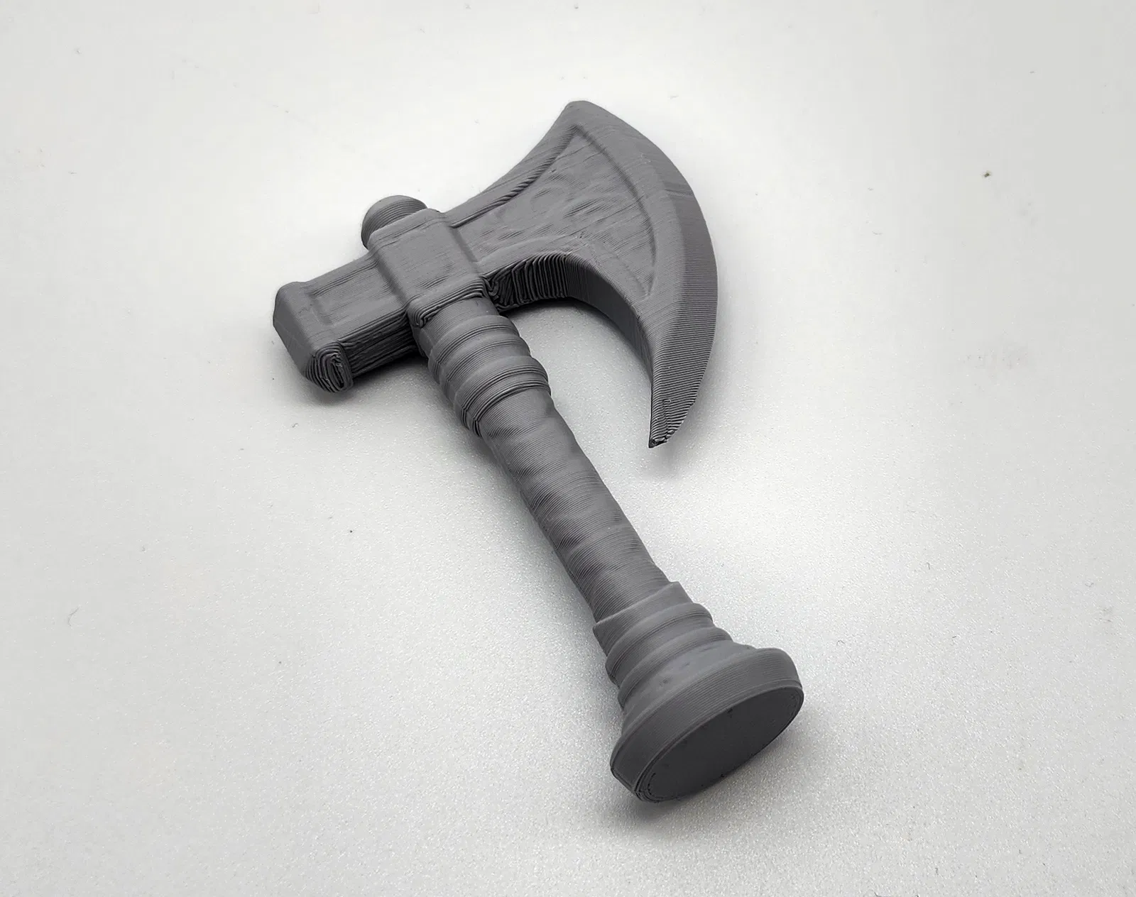 Cây rìu tí hon dành cho mini/tabletop: có thể là vũ khí của một anh hùng nhỏ, hoặc món loot/treasure trong hầm ngục. Phù hợp làm phụ kiện gaming, DnD, miniature và trưng bày.