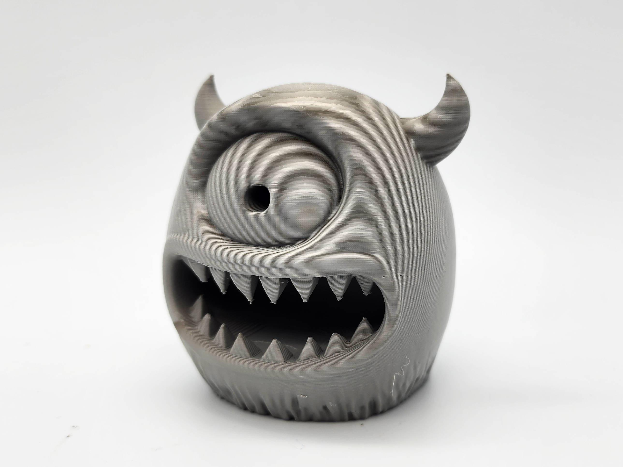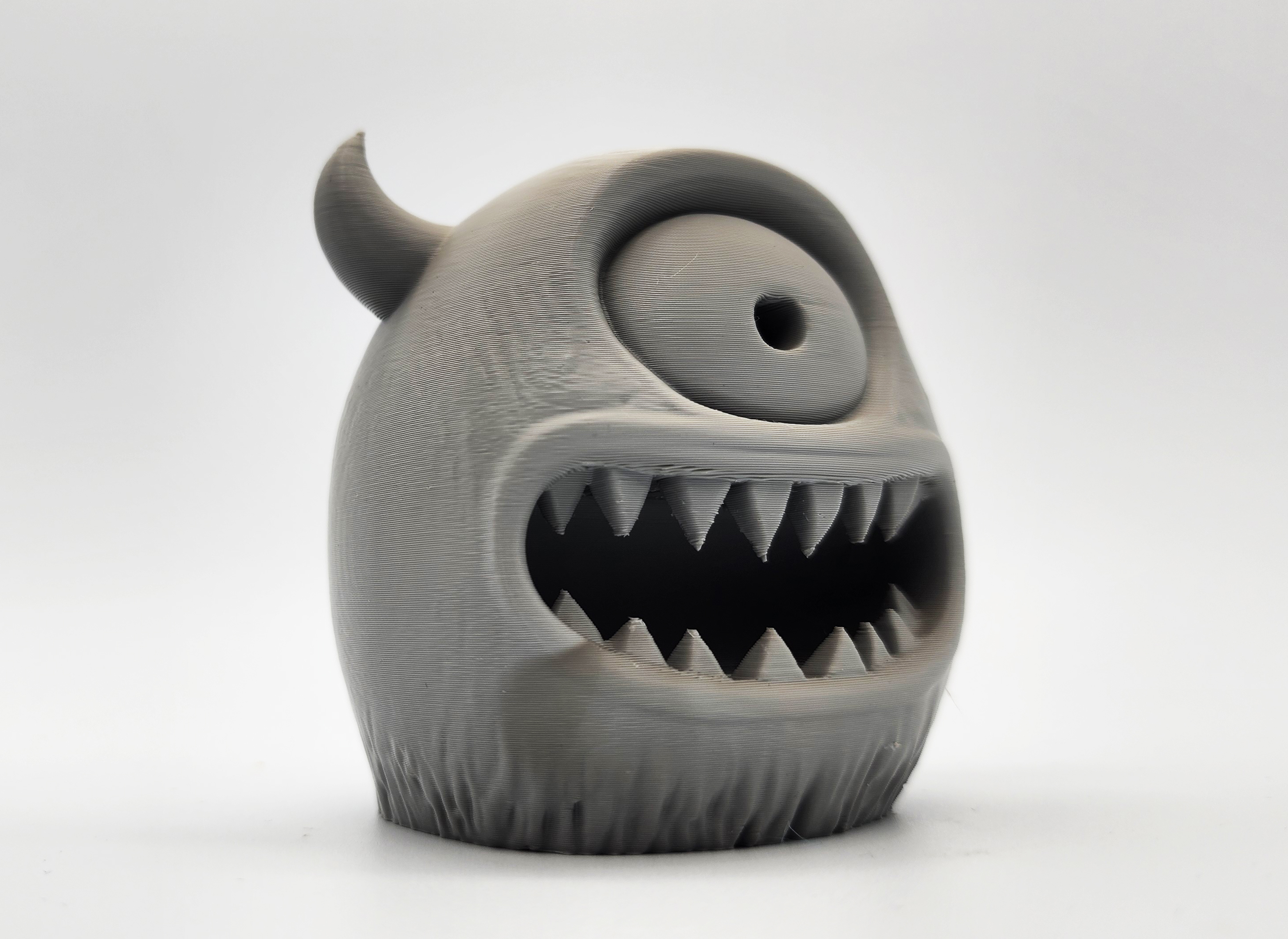 Mẫu Big-Eye Monster siêu dễ thương nhưng nhìn “nguy hiểm” đúng kiểu. Khi in nên bật supports; khuyến nghị dùng Tree Supports và chỉ đặt trên build plate để ra chi tiết đẹp, dễ gỡ.