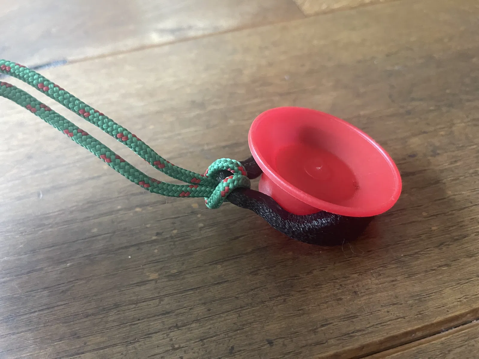 Móc treo này cho phép bạn treo chai nước của bạn từ túi. Nó sẽ đổ nắp với ma sát!