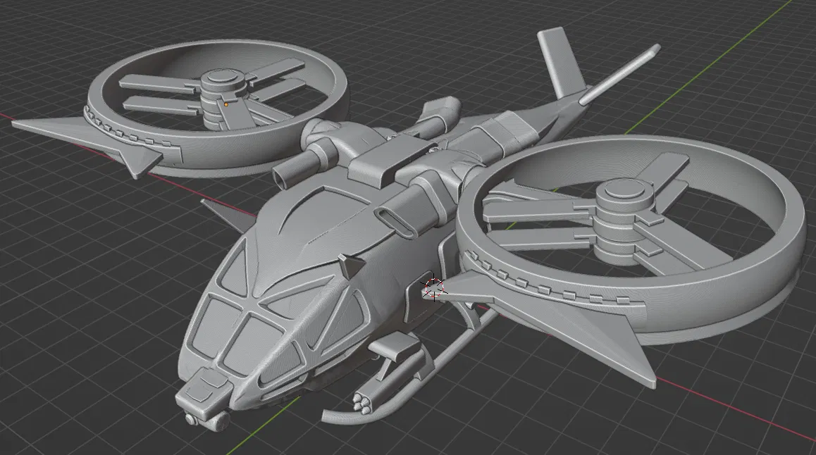 Mô hình rotorcraft tỉ lệ từ Avatar (2009), bản REDUX tối ưu cơ cấu rotor kiểu Scorpion: ráp 2 nửa fuselage để khóa rotor, bỏ khớp rườm rà. Có 3 biến thể cửa, thêm chi tiết và hướng dẫn lắp ráp.