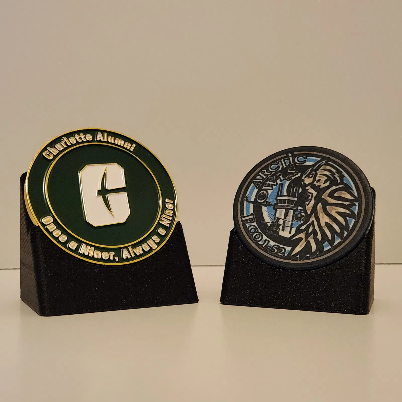 Stand đơn giản để trưng bày poker chip hoặc coin, tối ưu cho coin chuẩn 45mm. Có thể scale trong slicer để phù hợp các kích thước khác bằng cách tính hệ số dựa trên đường kính thực tế.