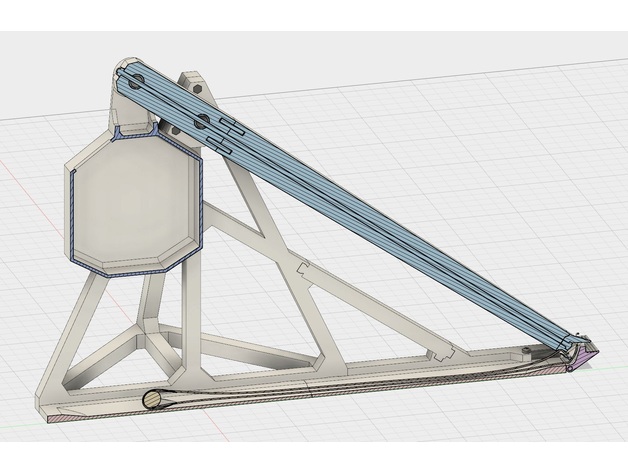 Mô hình Trebuchet (máy bắn đá) hoạt động được, dùng đối trọng kiểu “heo đất” nhét xu. In bằng thiết lập tiêu chuẩn, không cần support/raft. Cần thêm ty ren M3, ống 10mm, ốc M3 và lò xo.