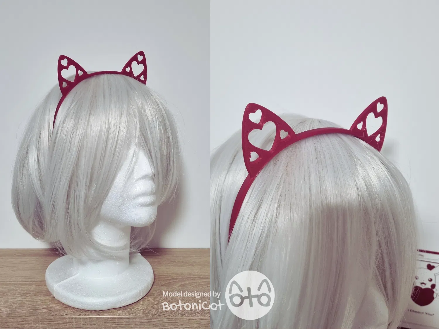 Băng đô tai mèo trái tim dễ thương, hợp làm phụ kiện thời trang, cosplay hoặc chụp hình dịp Valentine. Mẫu nhẹ, in nhanh và chỉ tốn chưa tới 10g filament, tiện để phối đồ hằng ngày.