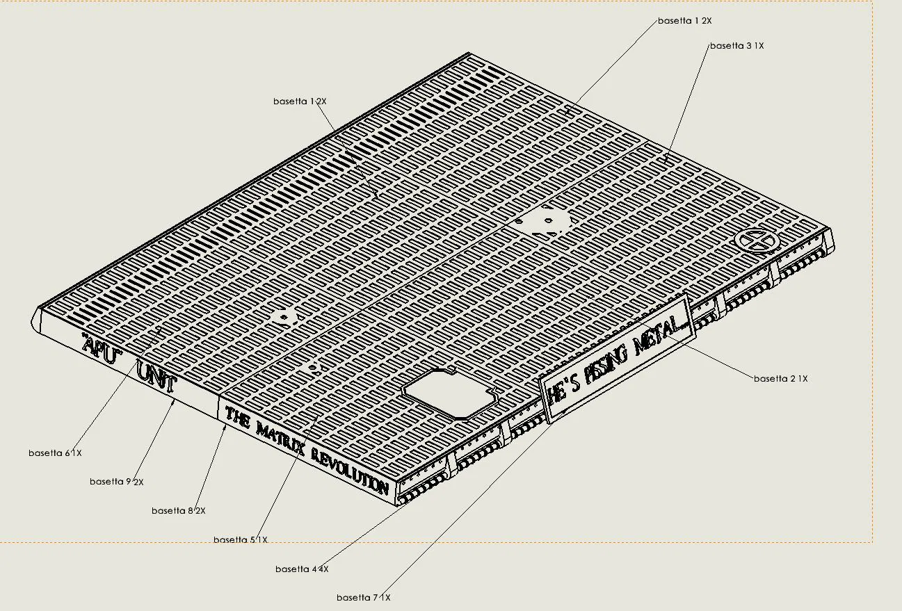 Model APU UNIT từ phim The Matrix Reloaded & The Matrix Revolutions, cao khoảng 50cm. Khuyến nghị in 0.10–0.15mm (mảnh lớn 0.20), dùng PLA/PETG; tổng nhựa (kèm supports) gần 2kg.