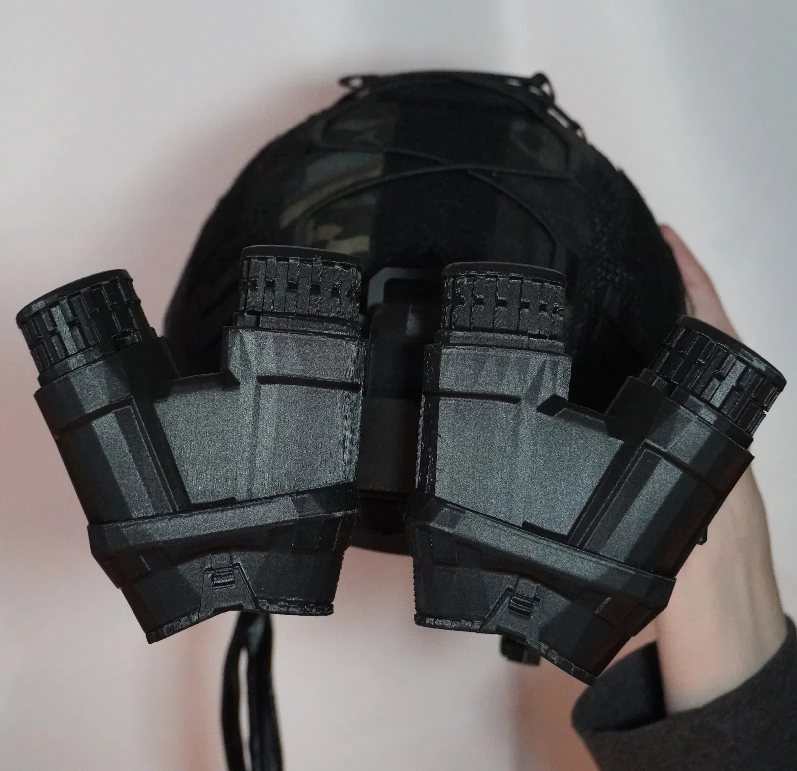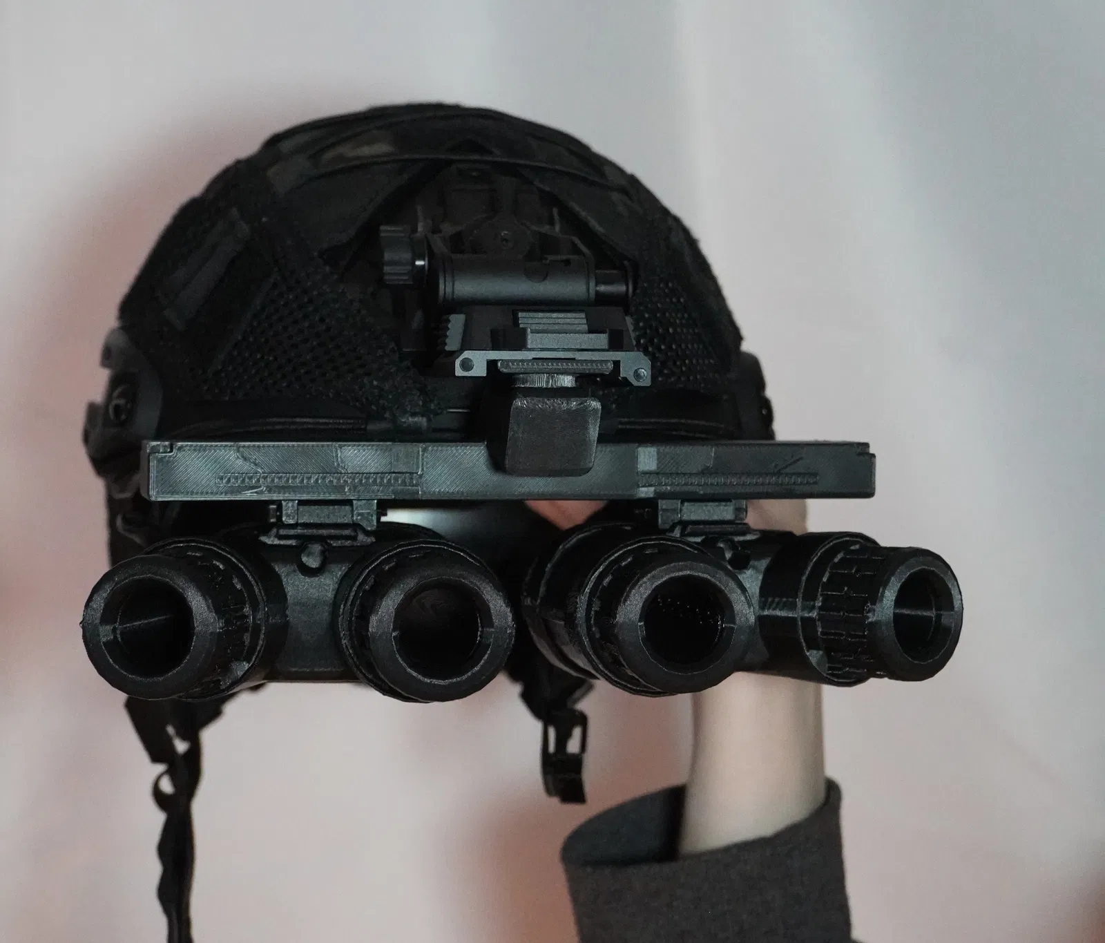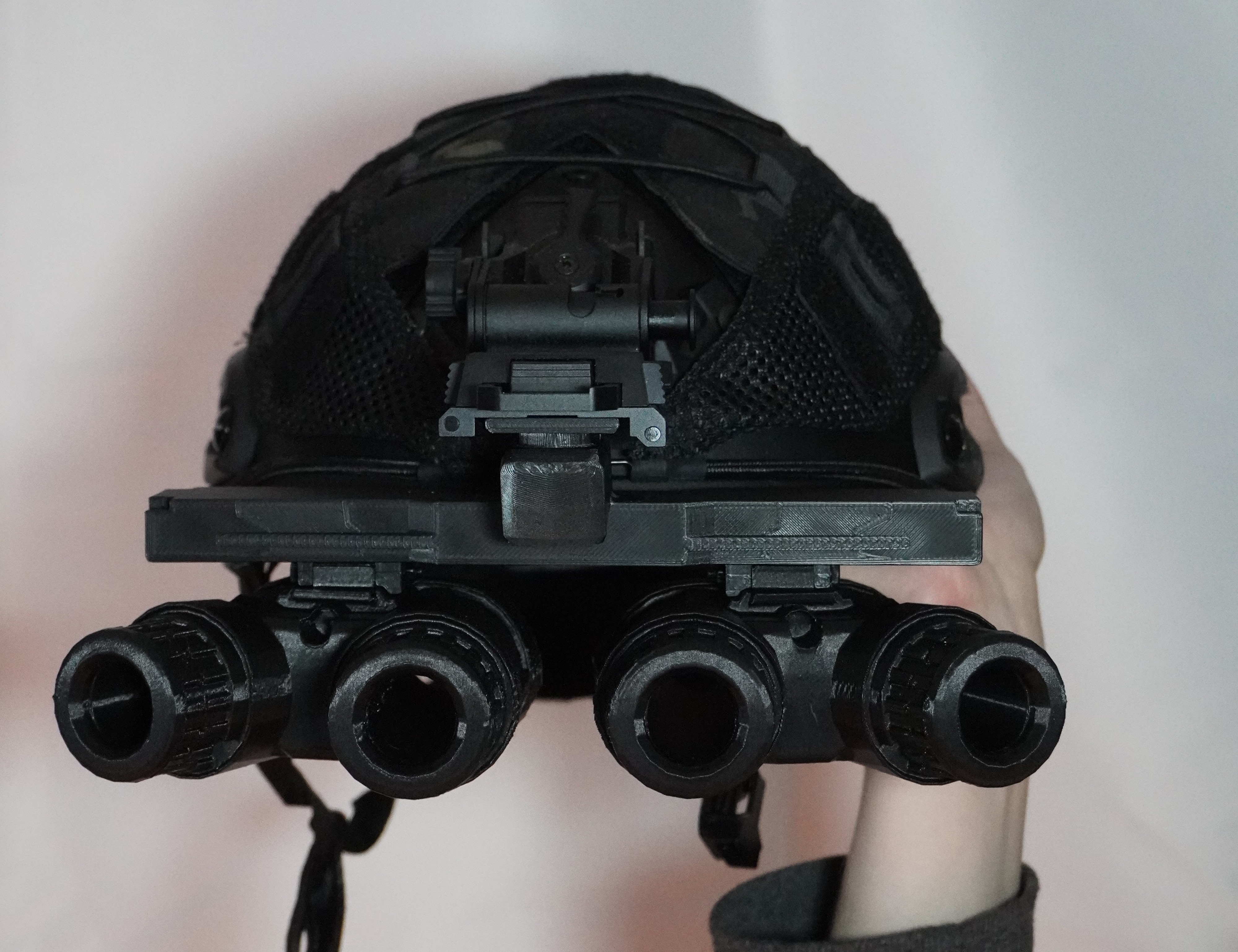 Mẫu dummy Modern NVG/GPNVG18 kèm Dovetail Mount, ít chi tiết để nhẹ hơn và bền/đầm hơn so với mẫu trước. Phù hợp trưng bày hoặc dùng “nặng đô” hơn cosplay. Có inserts cho màu nhấn/lenses 16mm.