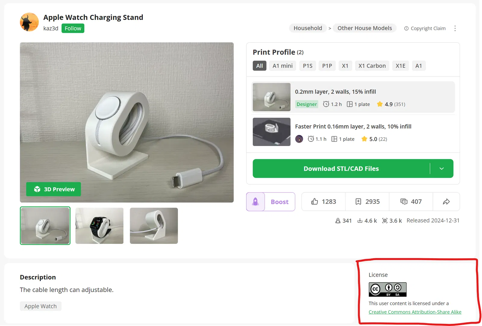 Đế sạc Apple Watch (có cuộn dây) – kaz3d