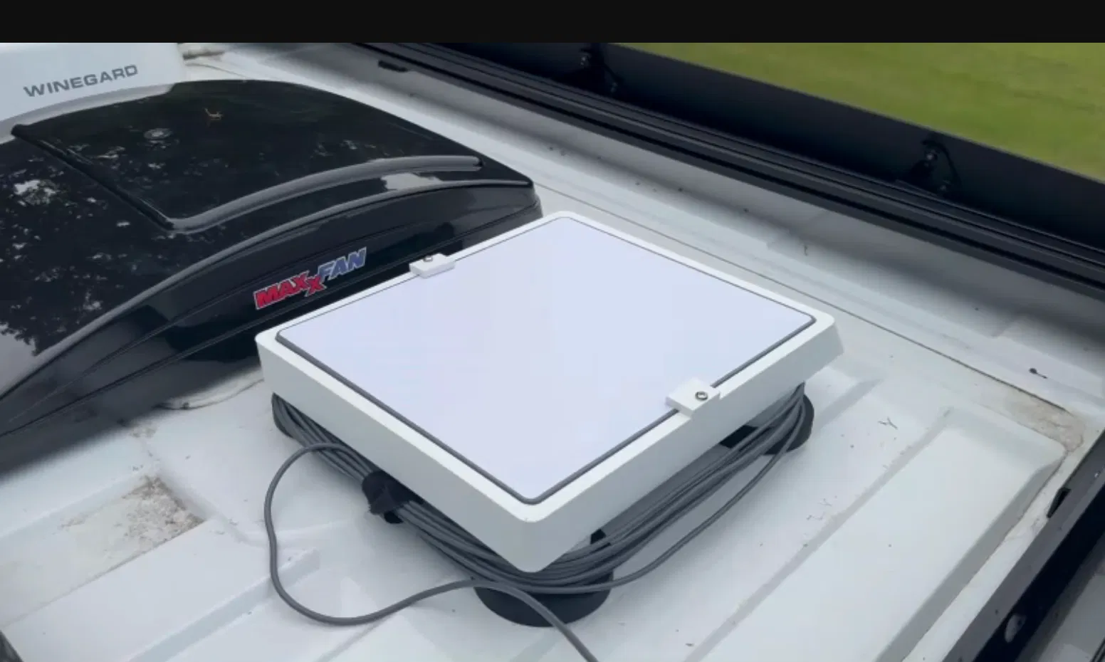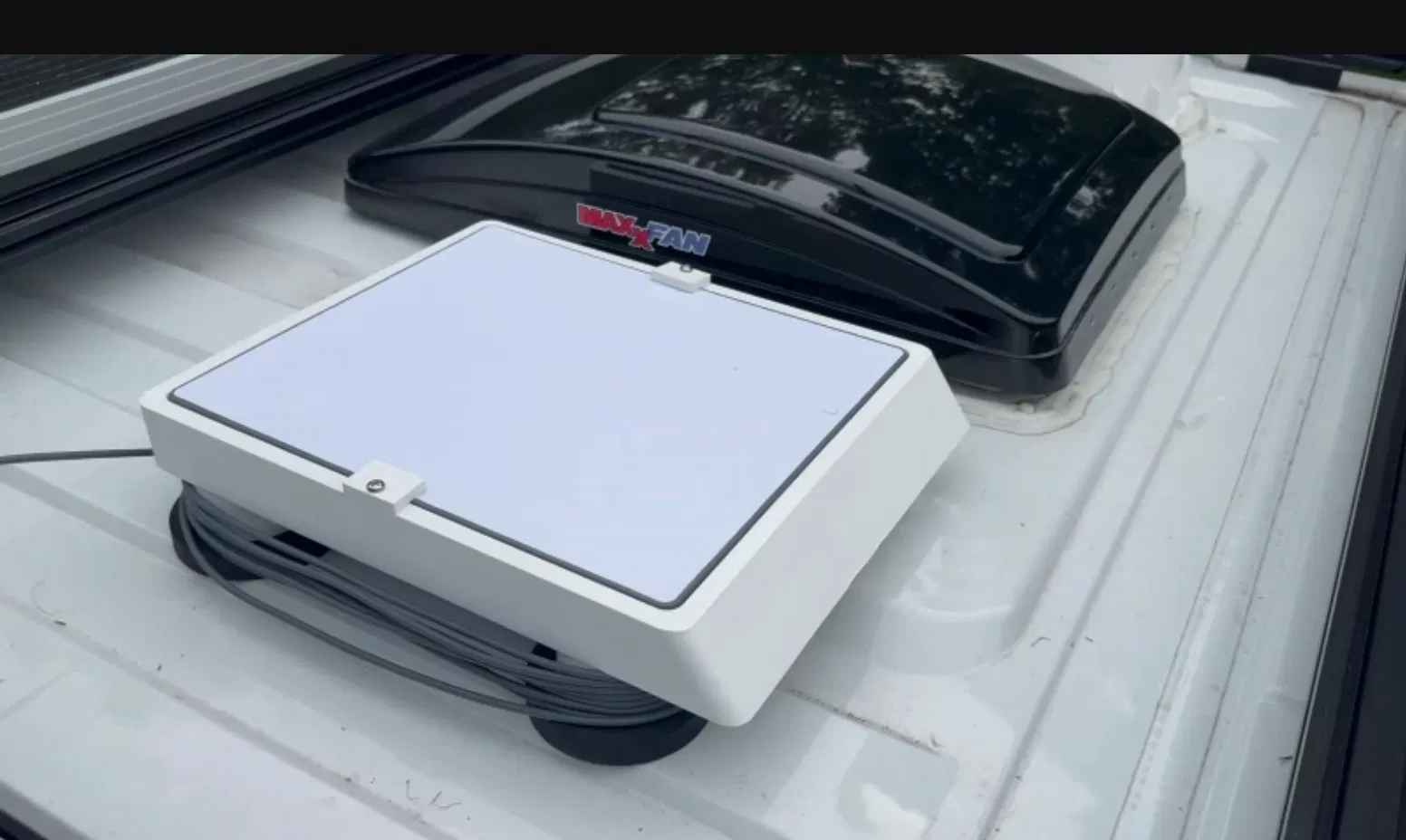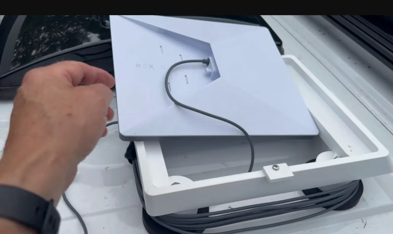 Bộ holder/mount nam châm cho Starlink Mini để gắn lên mái xe van. Có spacer chỉnh được (scale theo trục Z) để phù hợp gân mái khác nhau và kiêm quấn dây cho cáp 50 feet đi kèm.