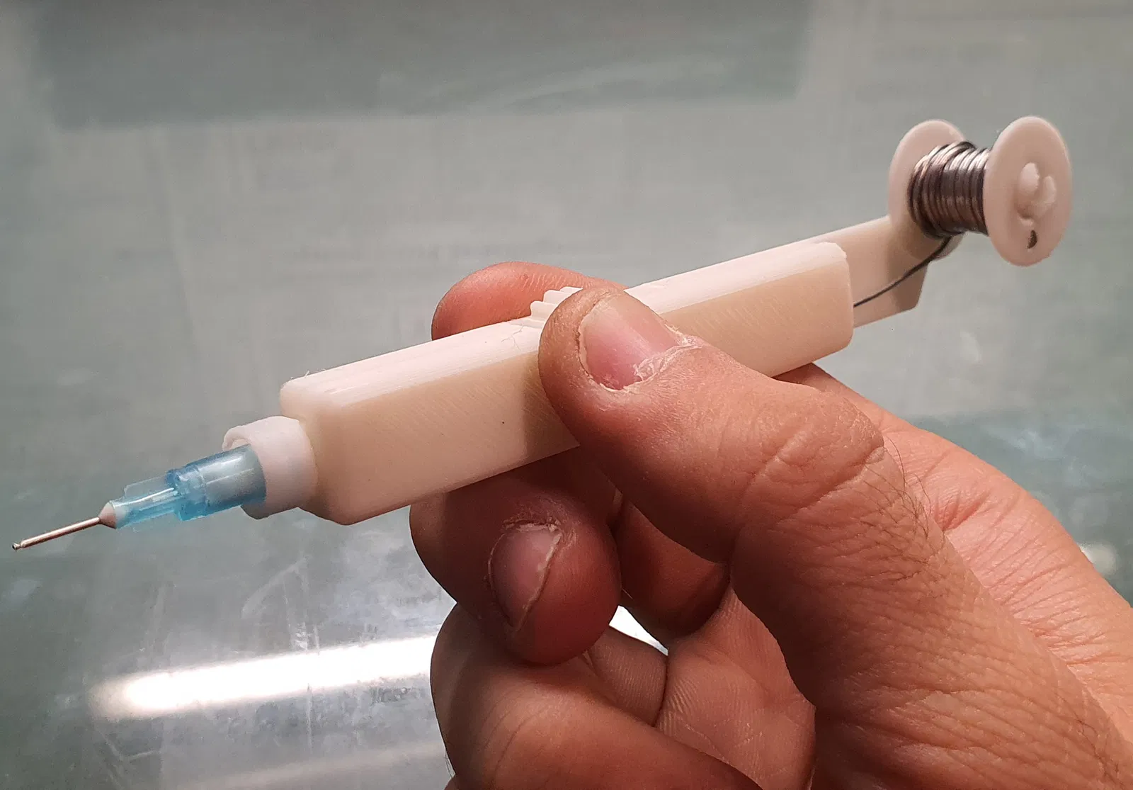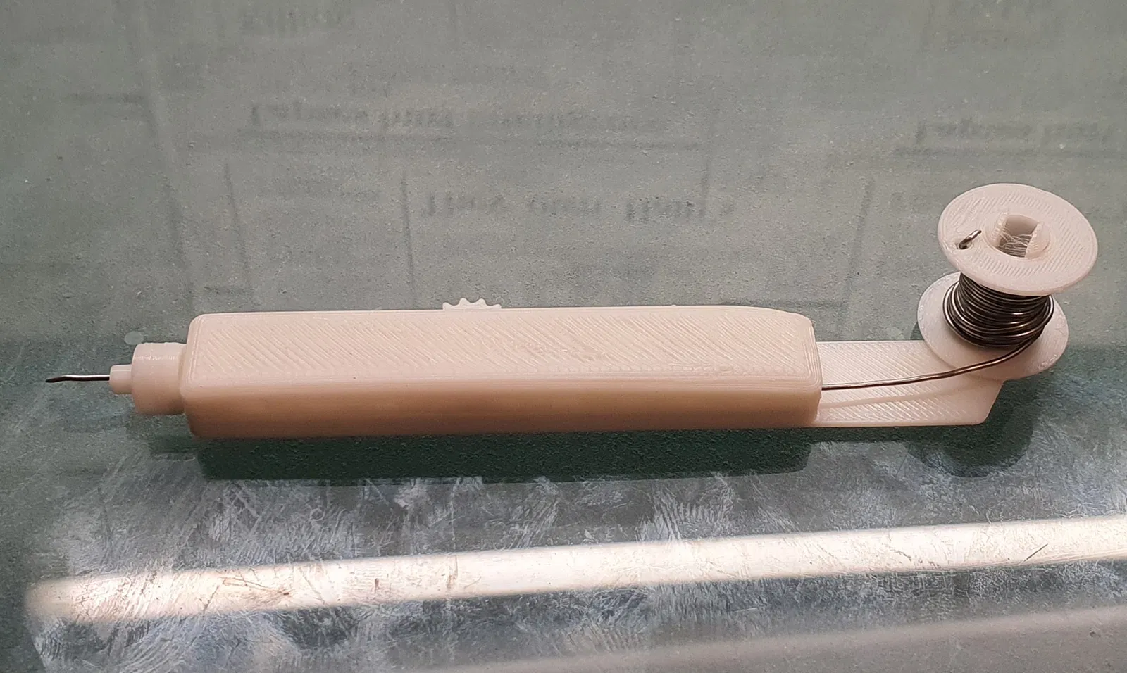 Dụng cụ cấp dây thiếc (chủ yếu 0.8mm) bằng cơ cấu gear, remix từ thiết kế của Orion Crawford. Có bản cập nhật thêm Luer Lock để khóa nozzle syringe tip và dẫn dây thiếc qua nozzle.