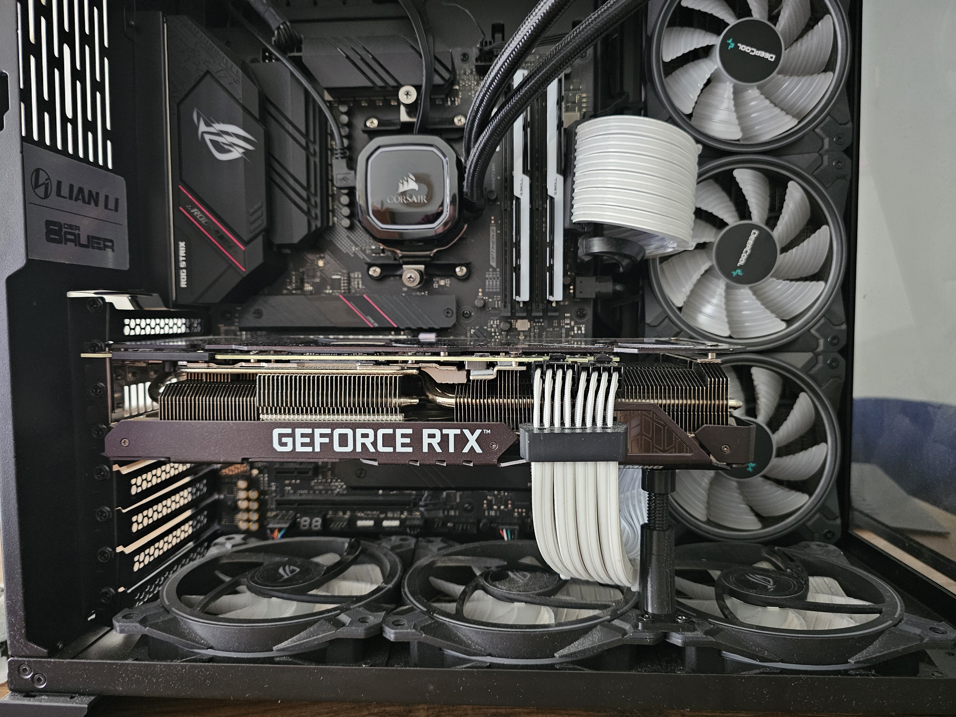Ngàm chống xệ GPU dành cho case Lian Li O11 Dynamic khi dùng cấu hình quạt ở đáy. Giúp đỡ GPU chắc chắn, gọn gàng để bộ máy đẹp khỏi bị “xệ”. Có thể in PETG, thêm rubber interface TPU hoặc dùng bumper pad.
