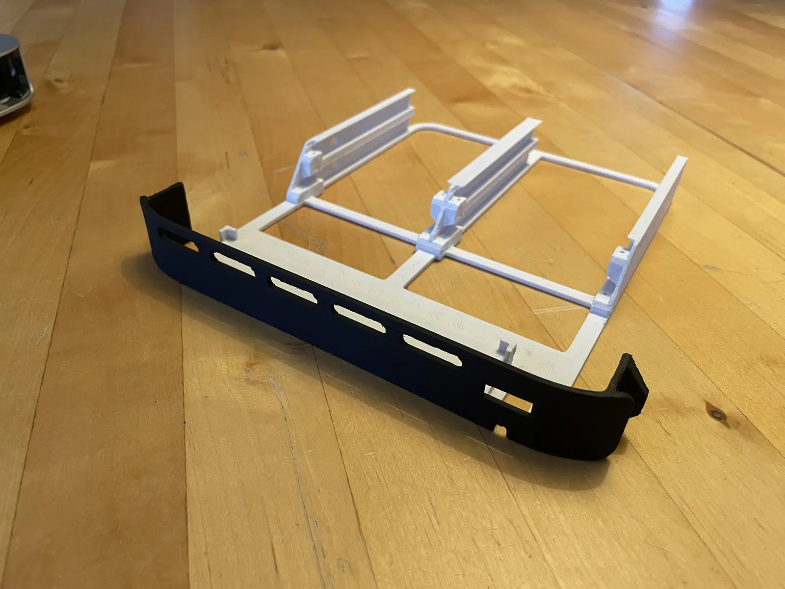 In bracket 3D. Mình dùng Inland PLA+ màu trắng và setting mặc định. Không cần support. Hướng đặt mẫu khi in như trong hình. Một vài lỗ có thể cần dặm lại chút xíu, do máy Ender của mình cũ.