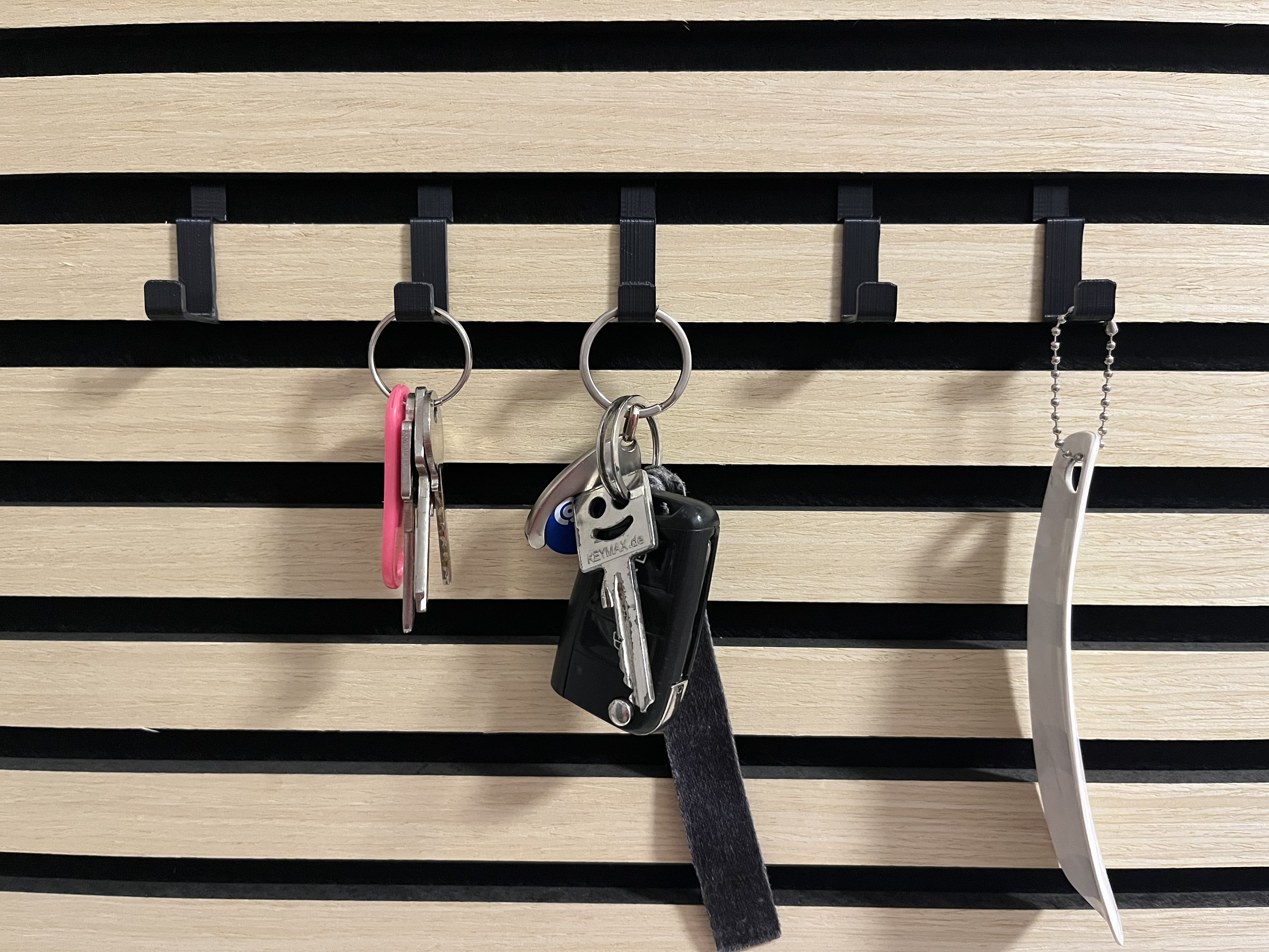 Mình tạo một cái móc nhỏ (rộng 10 mm) dành cho các tấm acoustic panel lắp theo hướng ngang. Móc được kẹp ở phía trên và có điểm tì ở phần dưới để tăng độ ổn định khi sử dụng.