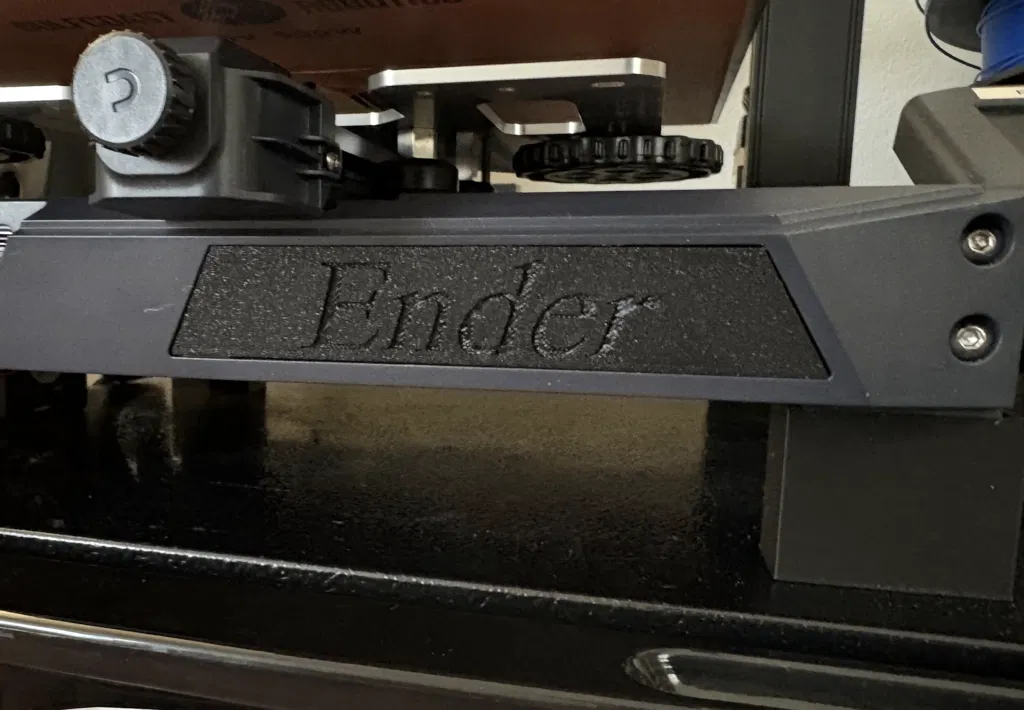 Do mấy chỉnh sửa, mình phải tháo tấm che đáy và ngăn kéo lưu trữ khỏi Ender 3 S1. Tấm cover plate này vừa khít vào phần lỗ ngăn kéo còn lại và bấm khớp vào vị trí bằng các clip. Mặt trước có chữ Ender được dập nổi. Bạn có thể in úp mặt xuống, để các clip hướng lên trên. Mình in trên Ender 3 S1 bằng PLA và không cần dùng support.