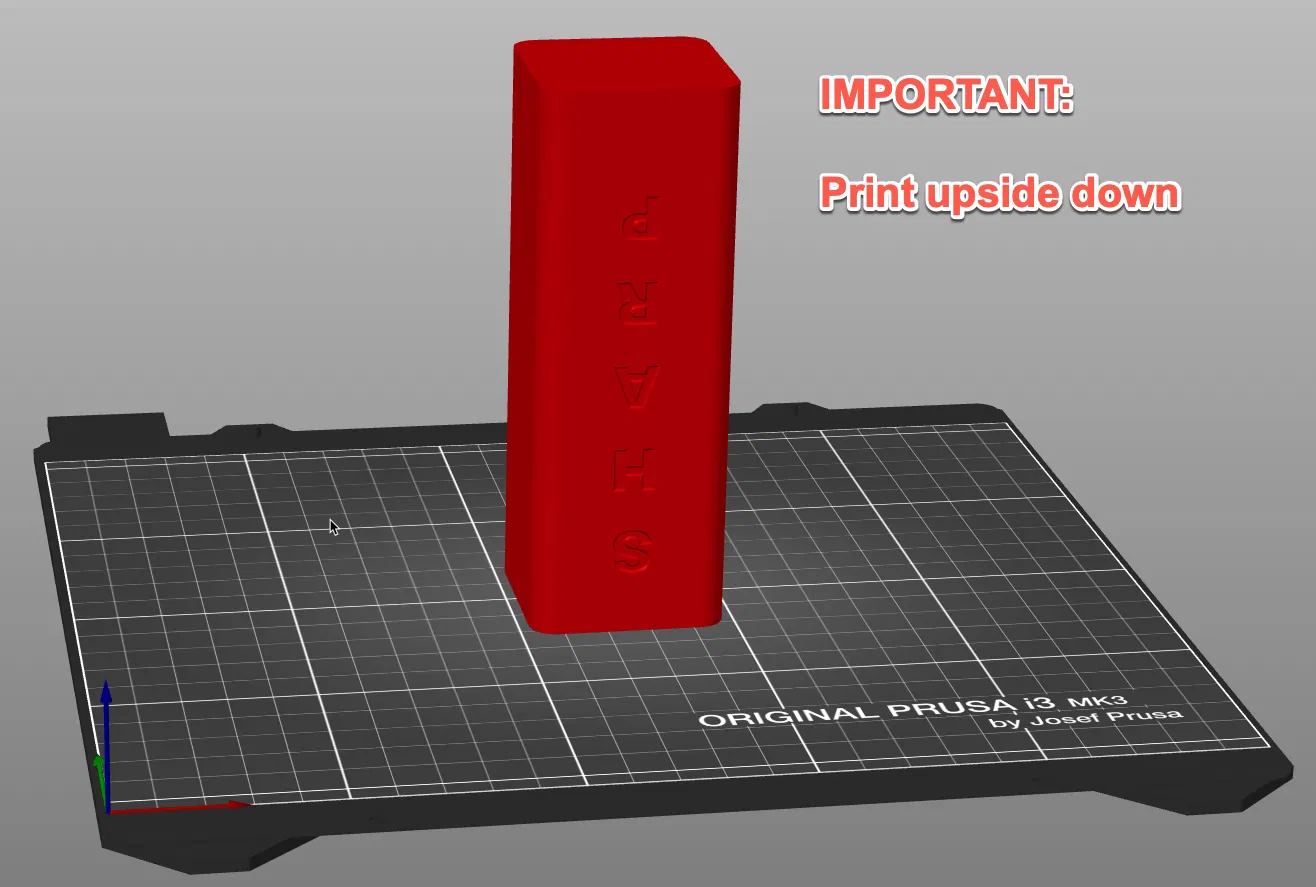 In ngược (upside down). Nếu không, phần hình học bên trong sẽ không được in đúng.