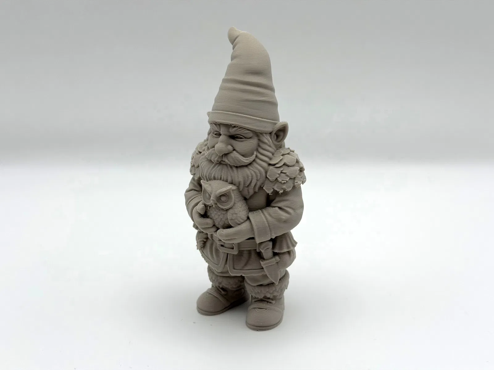 Owl Keeper Gnome mang nét phép màu và bí ẩn của rừng sâu cho kệ trưng bày hay khu vườn. Mẫu cần rất ít support; dùng organic supports và chỉnh Z-top height để gỡ support dễ, sạch hơn.