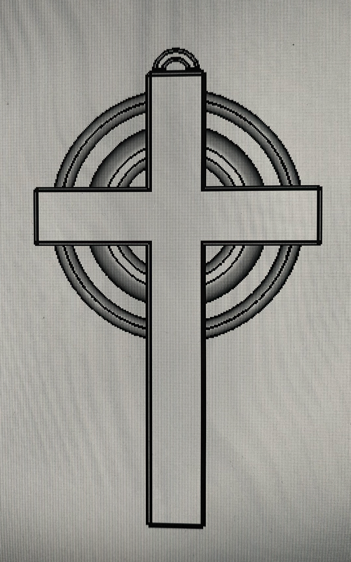Mẫu ornament Thánh giá Celtic đơn giản, biểu tượng truyền thống của Mặt Trời—vị thần tối cao của người Celtic—được Thánh giá che phủ, mang ý nghĩa đặt Chúa Kitô lên trên hết.
