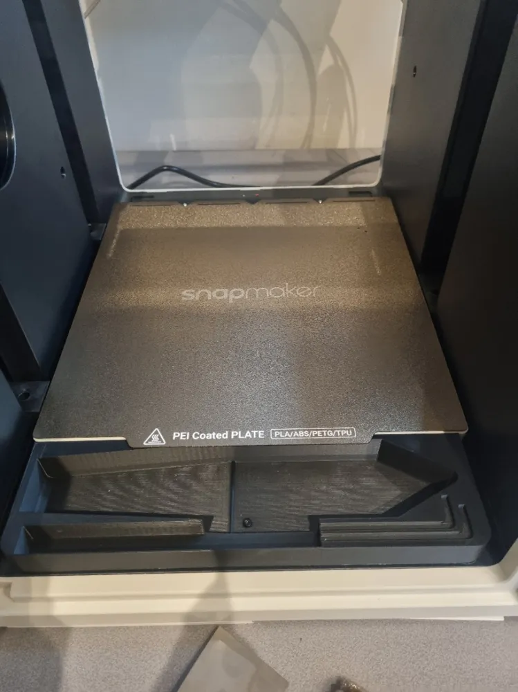 Khay/“toolbox” gắn phía dưới Snapmaker U1, ngay trước bed, để cất các dụng cụ đi kèm máy in. Đây là bản re-upload từ MakerWorld; mẫu này hơi to nên nên xem bản remix để fit tốt hơn.