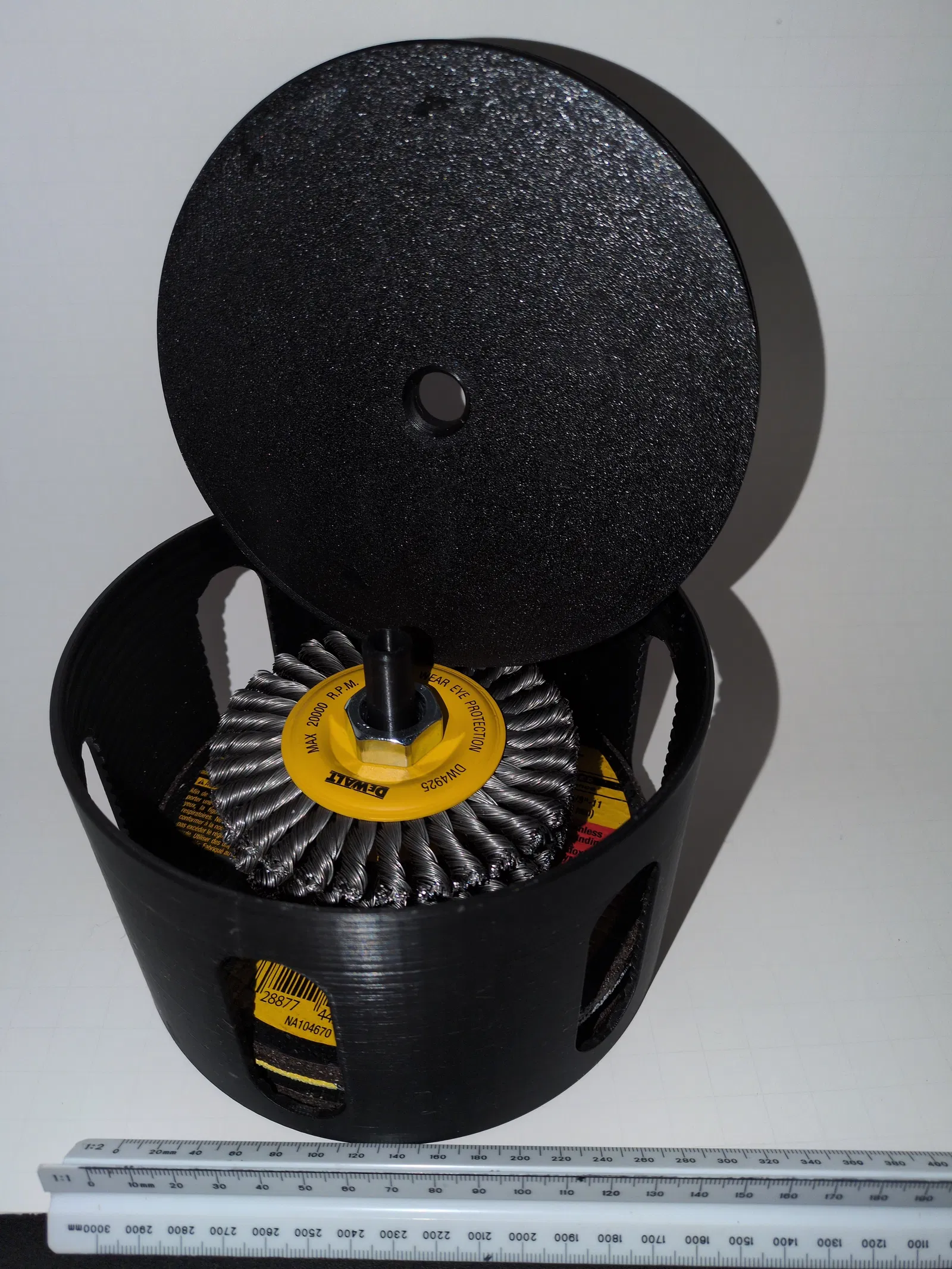 Hộp nắp vặn để đựng đĩa máy mài góc, kẹp chặt các đĩa lại để khỏi lạch cạch. In 3D khá dễ, nhưng khi vặn nắp cần canh ren kỹ để tránh bị vặn lệch ren. Có sẵn file FreeCAD để chỉnh sửa.