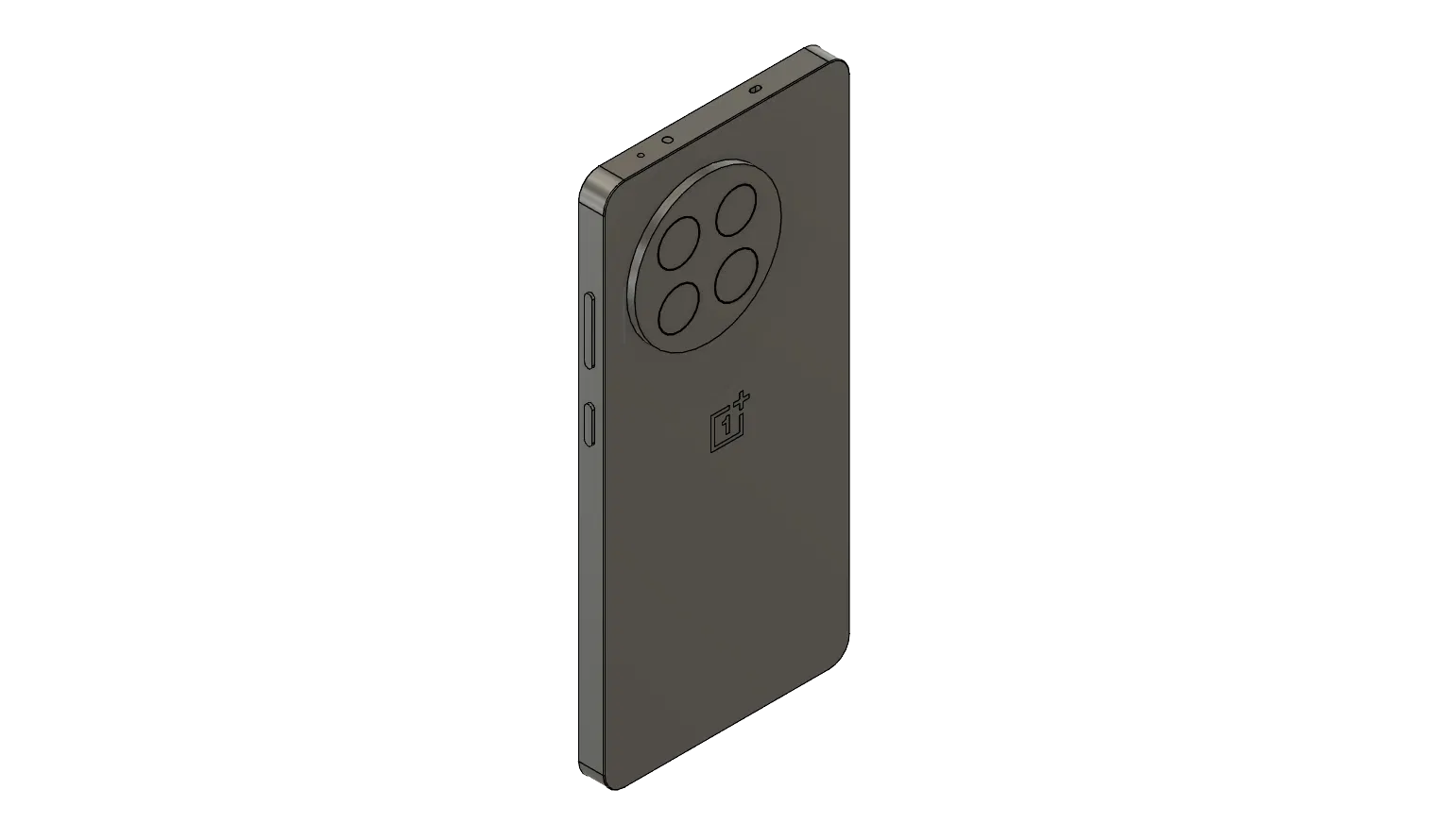 Mô hình mô phỏng hình dáng bên ngoài và kích thước của OnePlus 13R, thể hiện các chi tiết cơ bản như cụm camera lồi và vị trí nút bấm để tham khảo thiết kế hoặc in 3D.