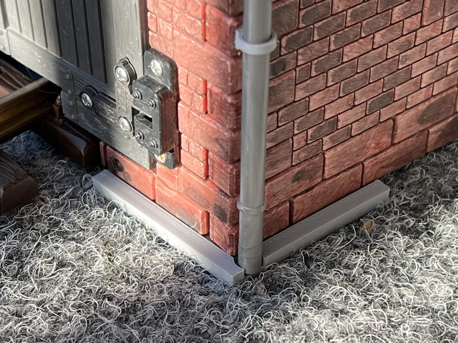 Nhà tròn cần một bề mặt đứng cấp. Vì bề mặt của tôi không hoàn hảo, các cánh cửa đã bị kẹt trên đường ray. Do đó, tôi đã sử dụng các bộ phận bổ sung này để san bằng tòa nhà. Các bộ phận góc cần được nhân đôi nếu được yêu cầu. Bạn cũng có thể điều chỉnh độ cao z khi cần thiết.