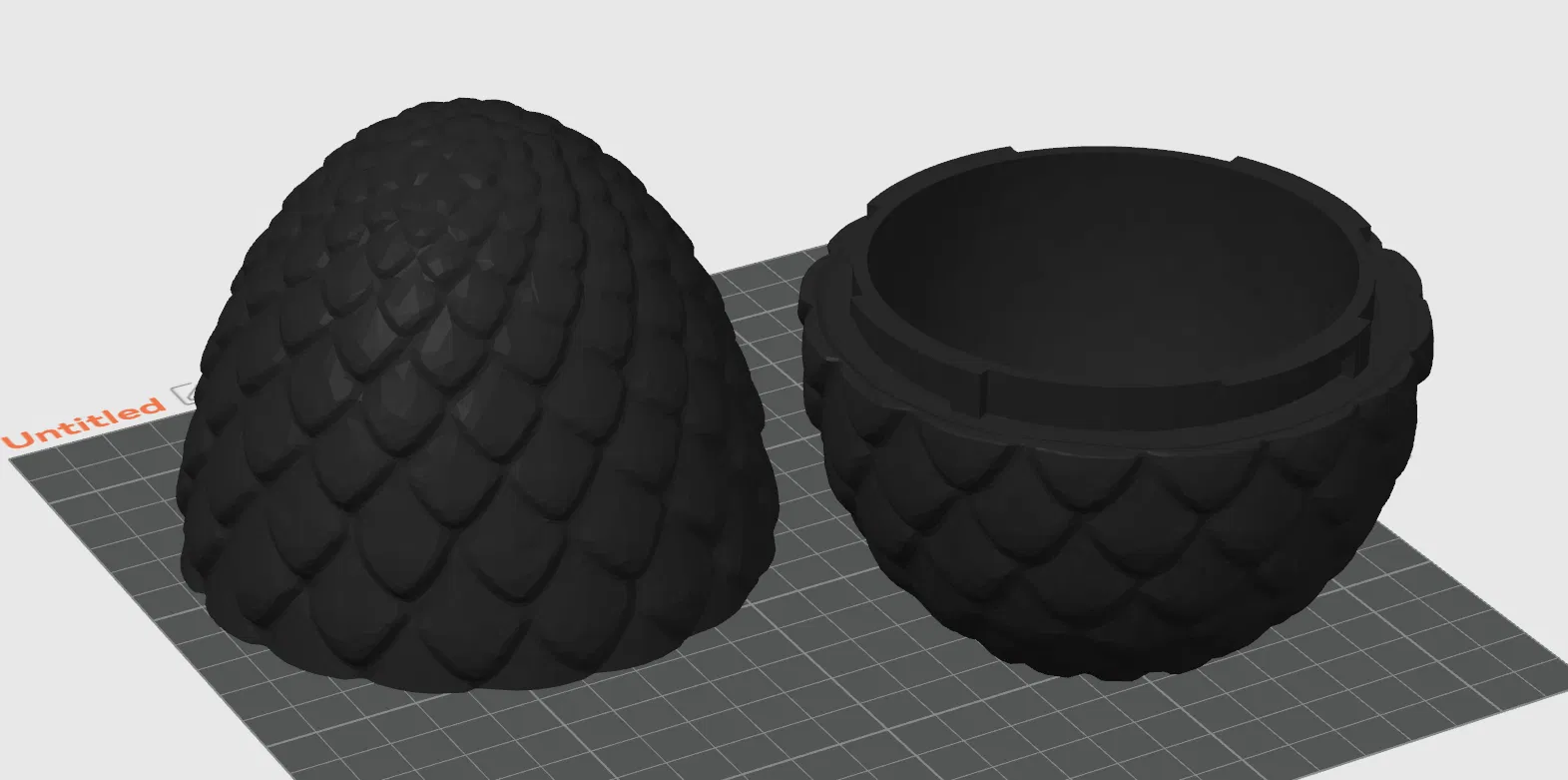 Mẫu trứng rồng gồm 2 mảnh với cơ chế twist lock (khóa xoay) để ráp lại gọn gàng. Phù hợp để trưng bày hoặc làm đồ chơi trang trí, mang phong cách “dragon egg” đơn giản mà đẹp mắt.
