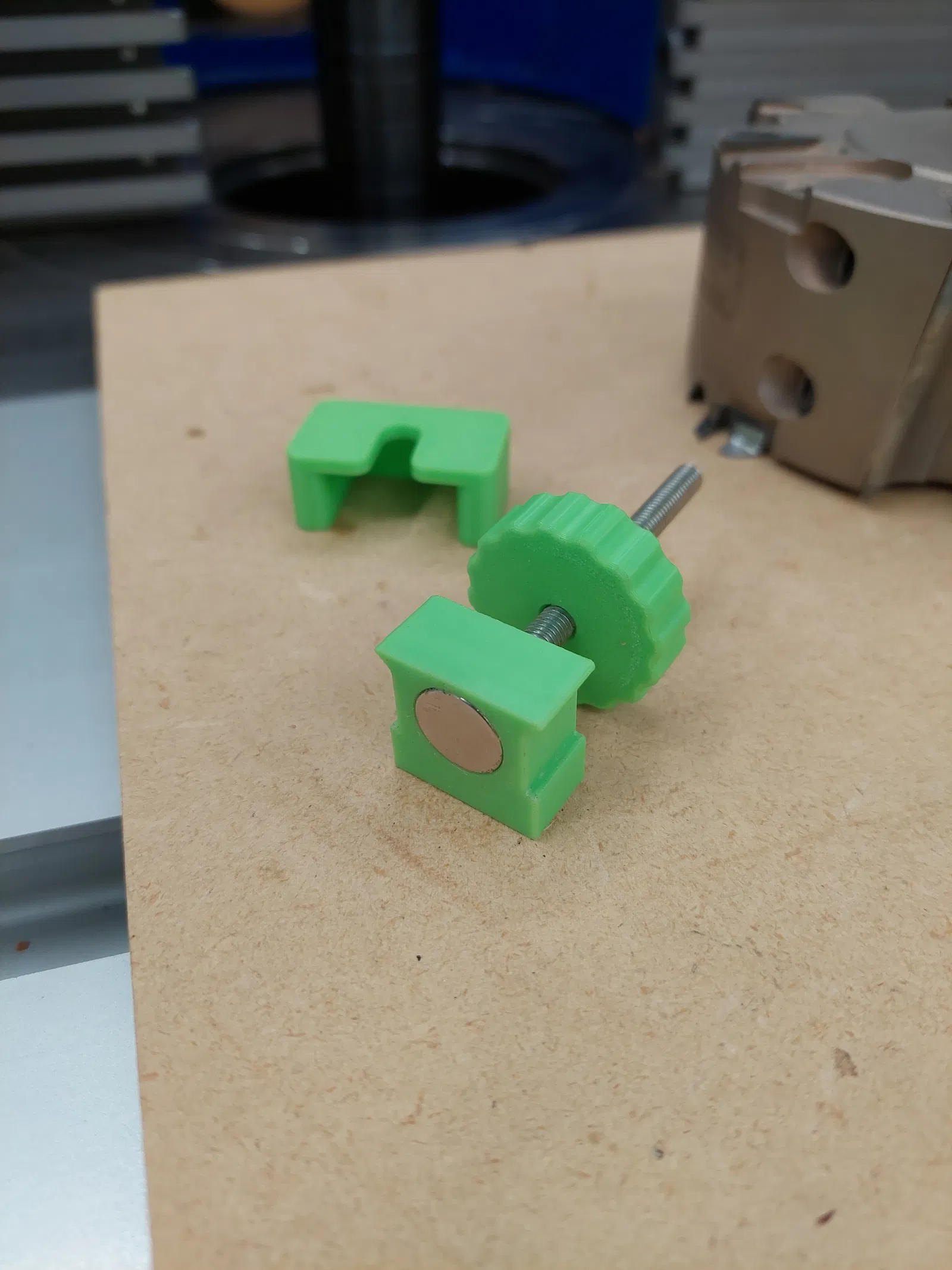 Mẫu setup jig giúp căn chỉnh radius/chamfer knives cho Garniga Adjustable Radius Shaper Cutterhead, đảm bảo hai bên cân nhau và cho phép micro-adjustment (1 vòng = 0,8mm). Kèm 3 file STEP, gợi ý in PLA và danh sách ốc, heat set inserts, nam châm.