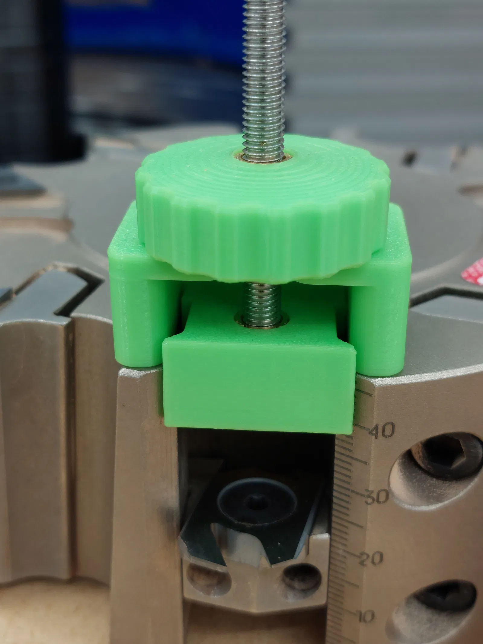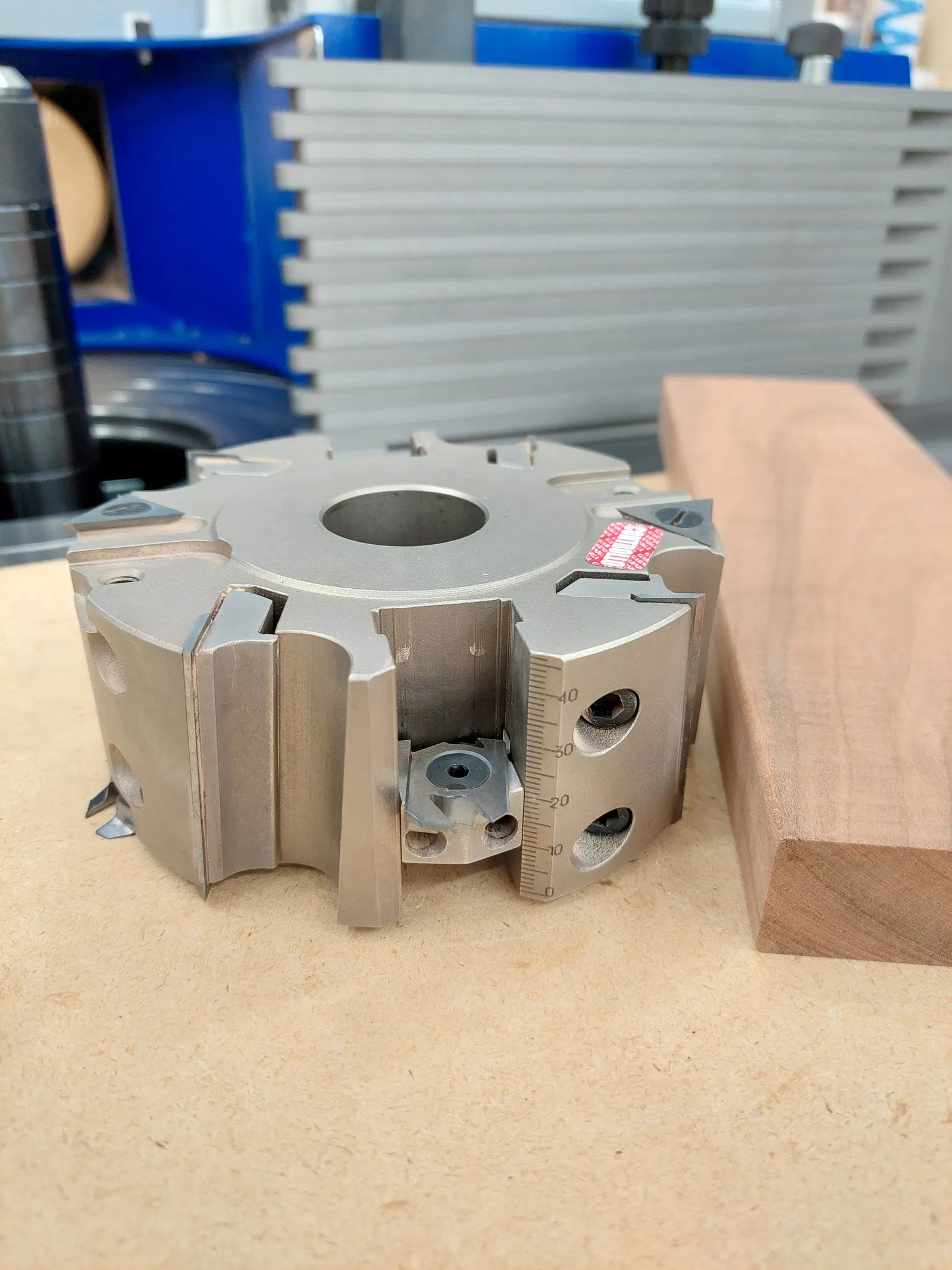 Đây là một bộ setup jig cho Garniga Adjustable Radius shear cutterhead. Có vẻ như cũng dùng được với đầu TWT. Trước giờ mình luôn thấy bực khi canh các adjustable radius knives trên bộ này vì gần như không thể đặt lưỡi dao ở cùng một vị trí giữa hai phía đối diện. Qua quá trình mình test, vấn đề đó không còn nữa và setup jig này còn cho phép micro-adjustment cho lưỡi dao (vặn 1 vòng đầy tương đương chỉnh 0,8mm). Ngoài ra, cũng dễ dùng khi cutterhead đang gắn sẵn trên spindle để fine tuning.