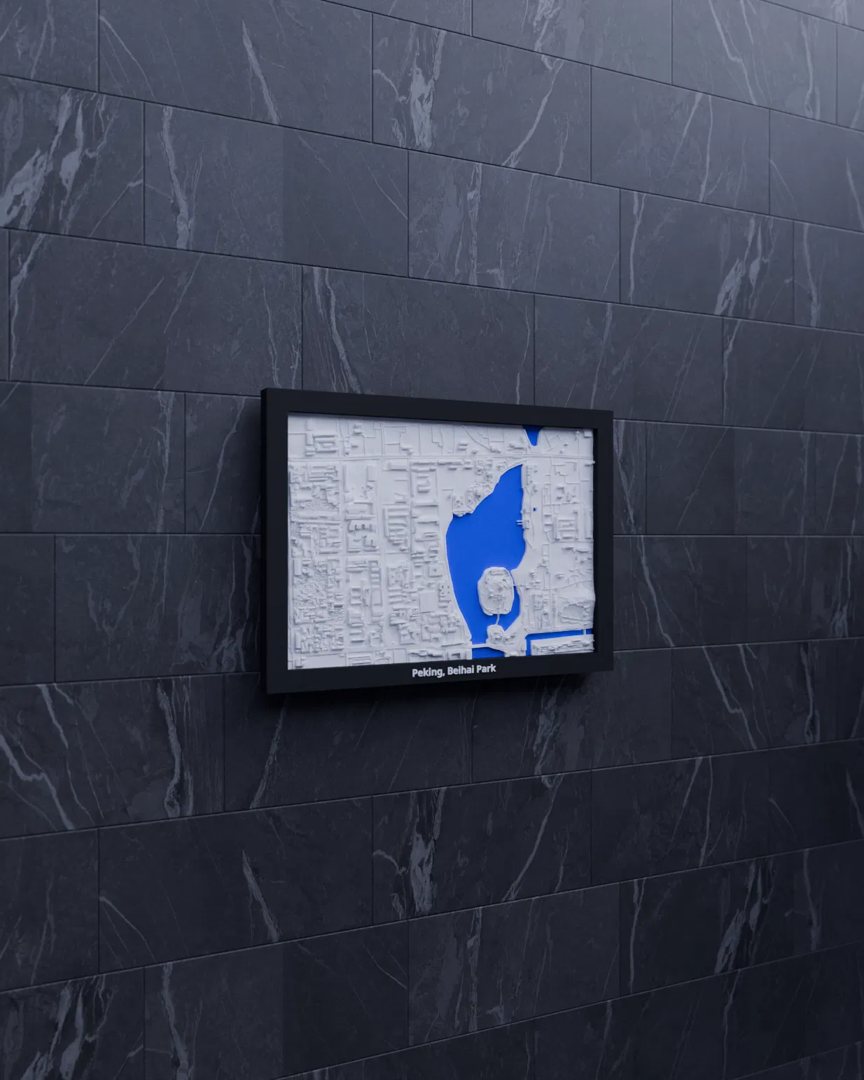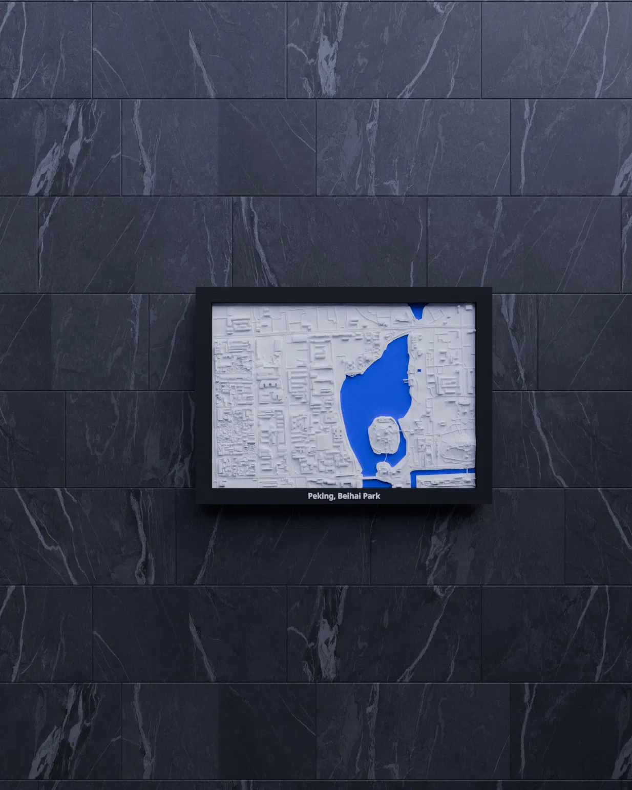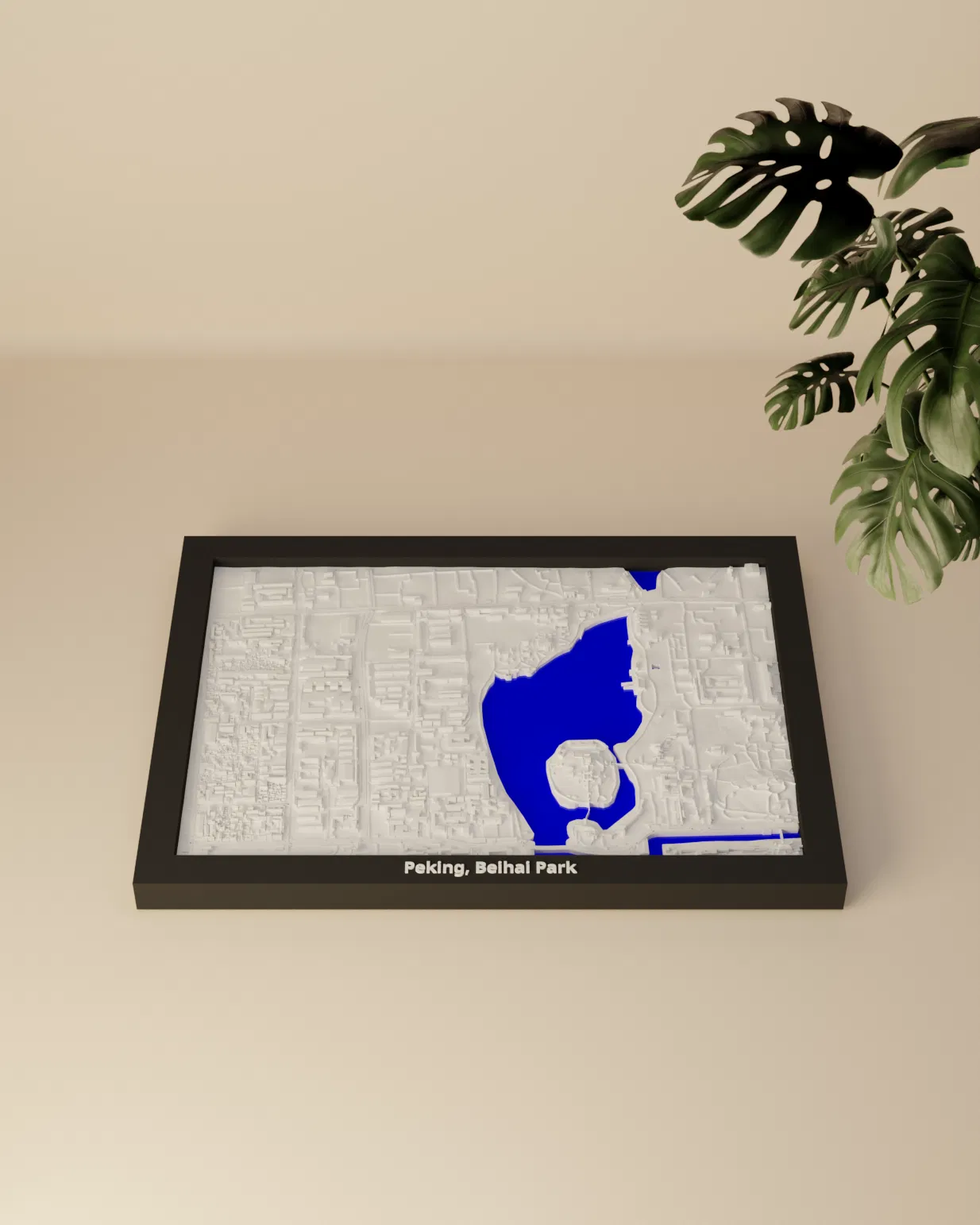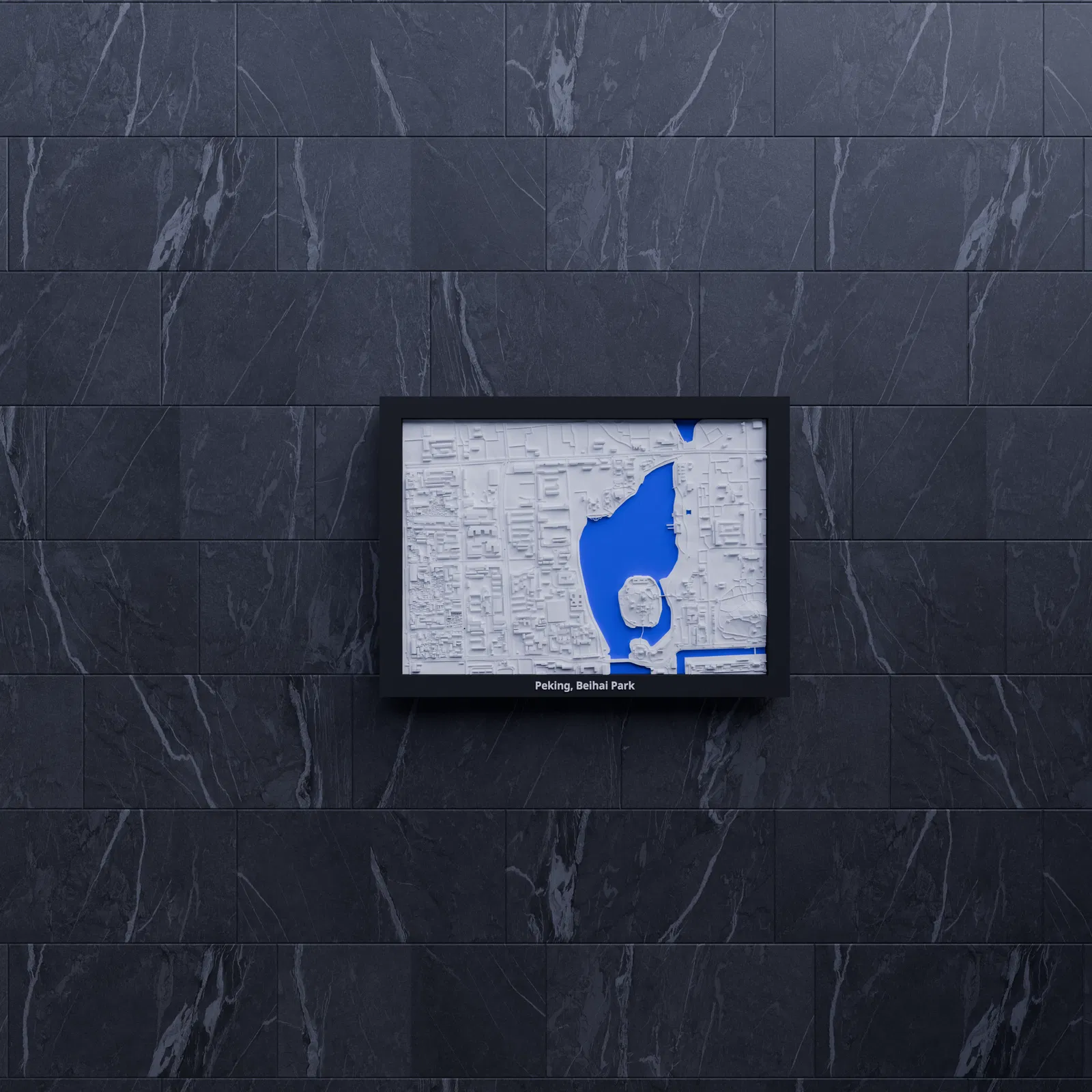 Mô hình topographic thu nhỏ tái hiện khu vực Peking, Beihai Park (Trung Quốc) từ dữ liệu địa lý. Kích thước in 170.5 × 119.5 mm, có nhiều frame kèm lỗ treo; phù hợp học tập, trưng bày và làm quà tặng.