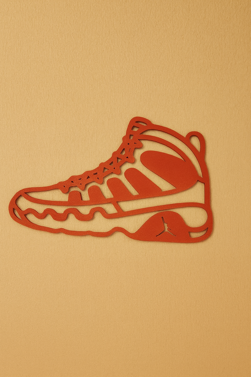 Mẫu wall-art dạng silhouette gọn đẹp của đôi Retro IX Sneaker kinh điển. Nét viền mảnh, dễ in, không cần supports. Rất hợp treo trong phòng sneaker, góc gaming, phòng ngủ hoặc trưng bày ở shop.