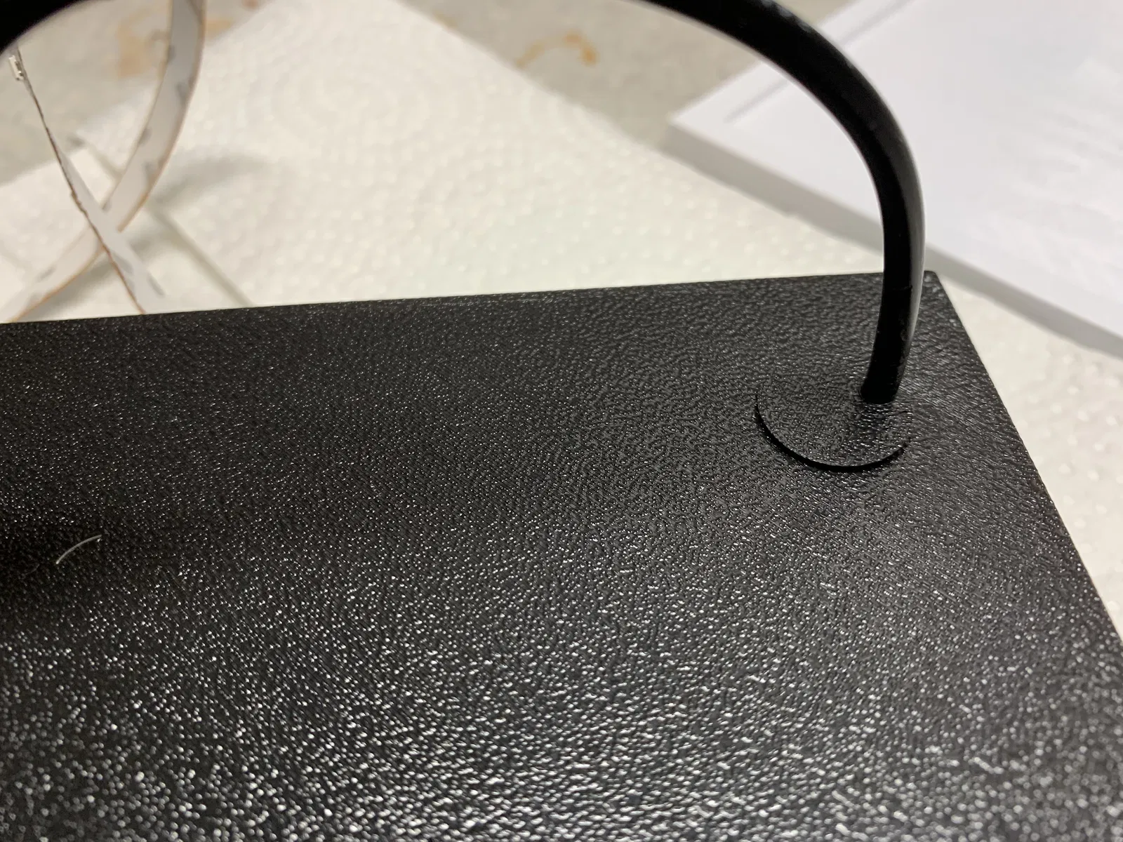 Phần chống tuột/cố định dây (cord relief) là dạng press-fit vào mặt sau và giúp tránh làm đèn bị căng nếu lỡ bị giật dây. Tấm lithophane lắp khít vào khung vì phía dưới có 2 gờ nhỏ để giữ cố định.
