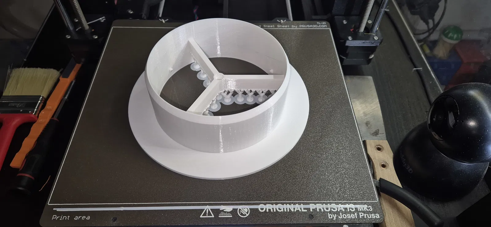 Difusser DN125 là bộ khuếch tán gió (diffuser) thiết kế gọn, tiết kiệm không gian cho hệ thống thông gió/recuperation và aircondition. Gợi ý thiết lập in cho PETG: layer 0.2 mm, infill 20%, supports Organic.