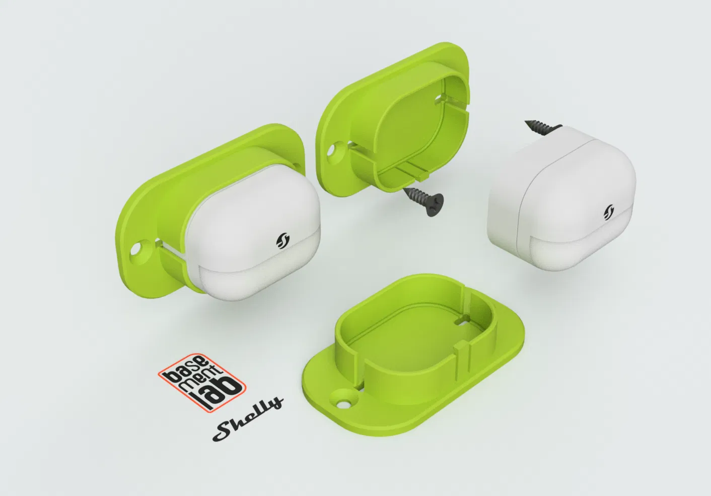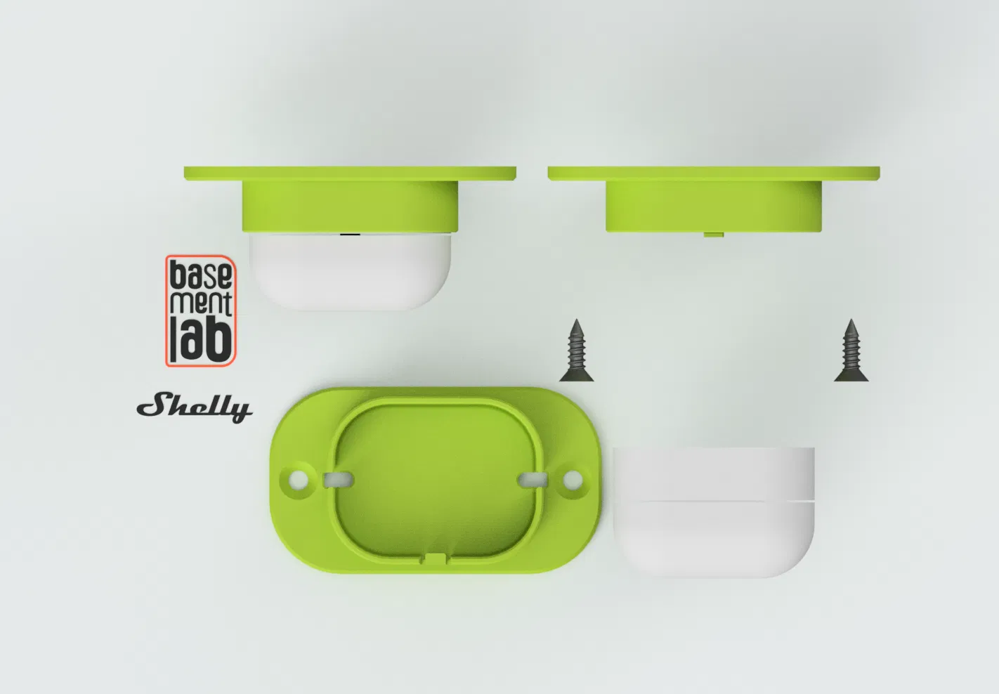 Mẫu giá đỡ (bracket) gắn tường cho cảm biến ShellyBLU Motion Bluetooth. Dùng 2 vít và tắc kê (wall plug) tùy theo bề mặt lắp đặt, giúp cố định cảm biến gọn gàng cho hệ home automation/Home Assistant.
