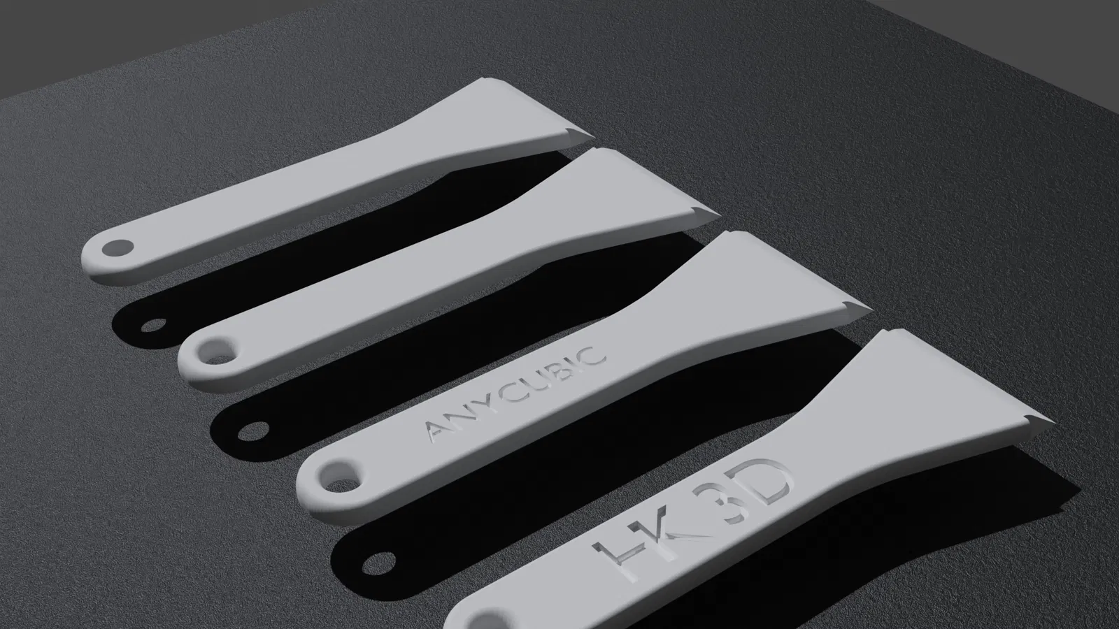 Mẫu grattoir/scrapper với nhiều phiên bản khác nhau, dùng để cạo vệ sinh bề mặt hotbed khi in 3D hoặc cạo kính/pare-brise (kính chắn gió). Thiết kế gọn, dễ in và dễ sử dụng.