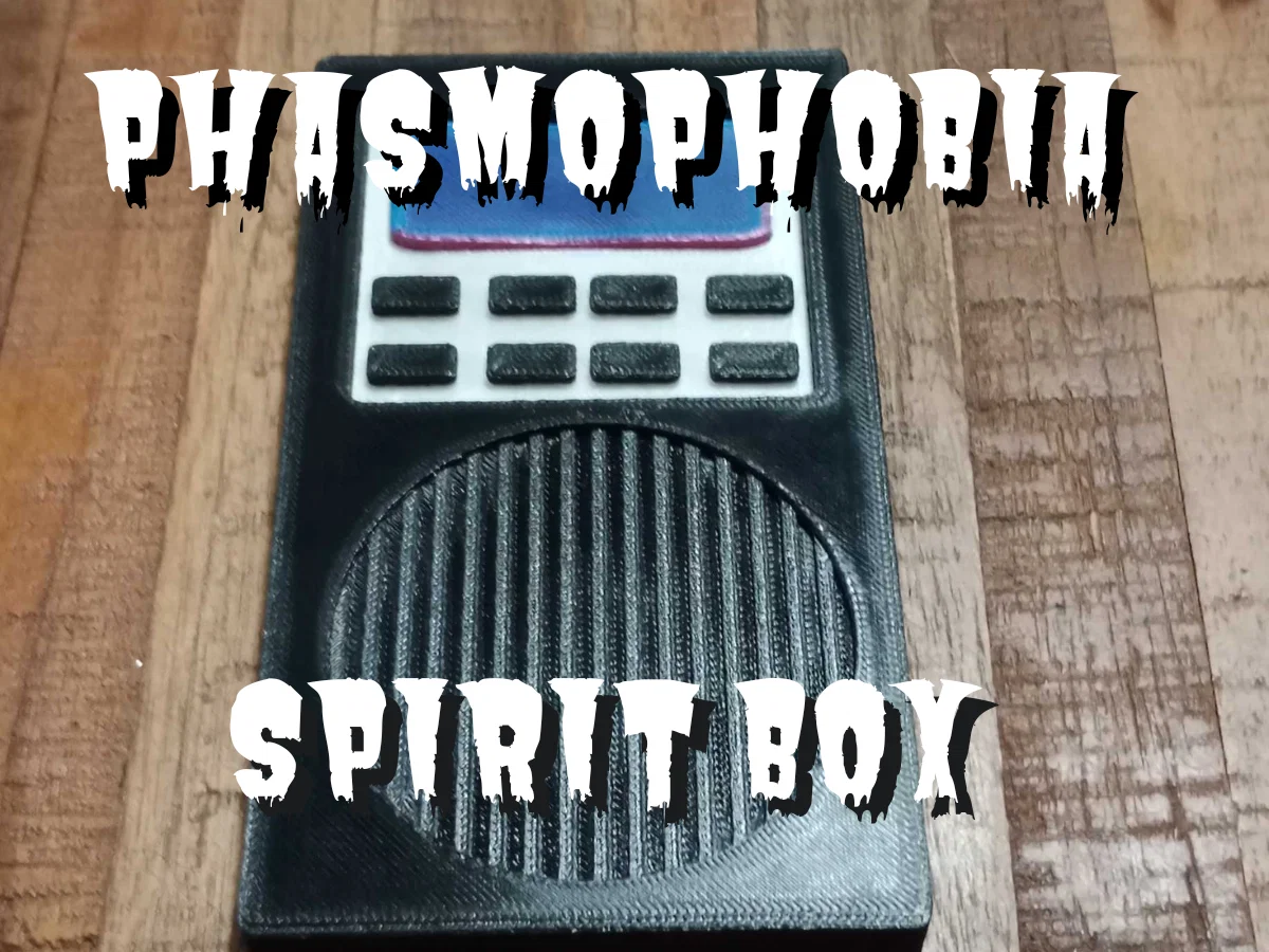 Mẫu Spirit Box trong game Phasmophobia. Gợi ý màu in: Body.stl màu đen, Antenna.stl màu xám, Screen.stl màu cam. Khuyên scale 200% để giống bản gốc hơn khi trưng bày.